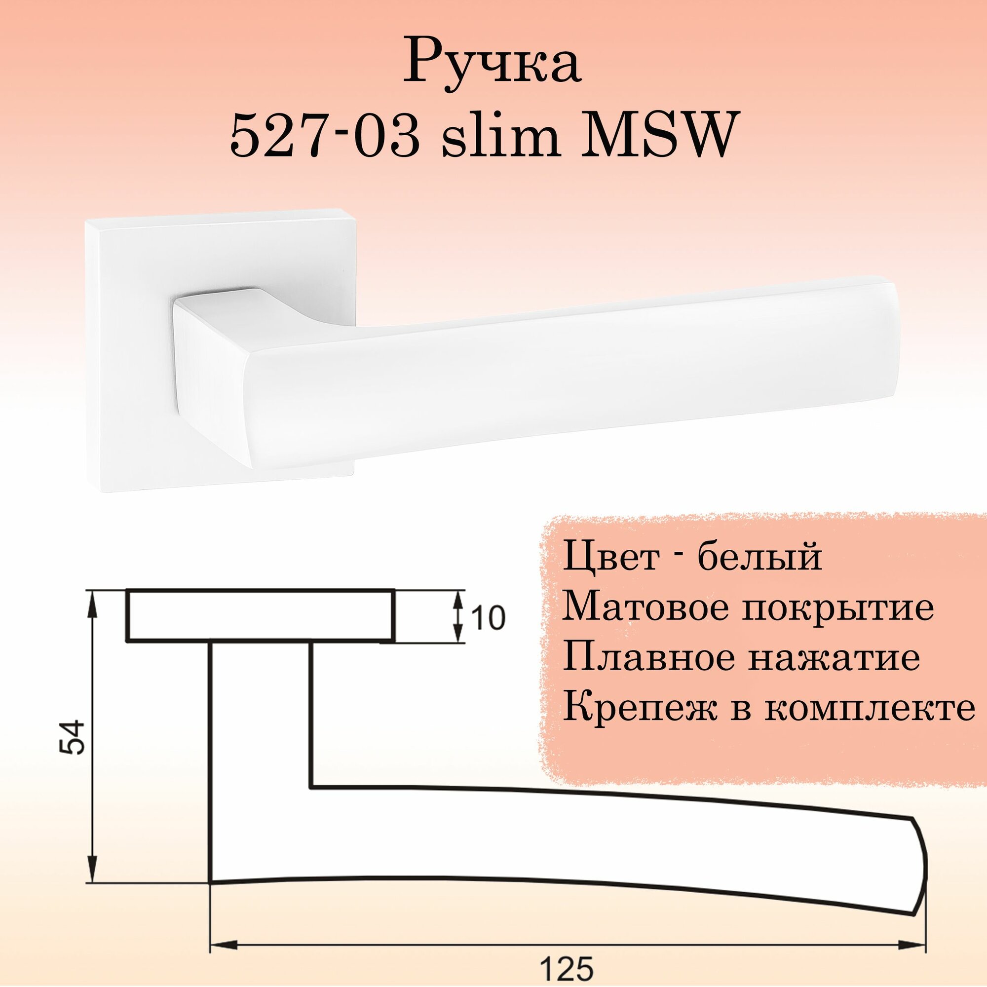 Ручка дверная межкомнатная Puerto INAL_527-03_MSW_L6-45, белый (ручка + замок защелка + 2 петли без врезки)