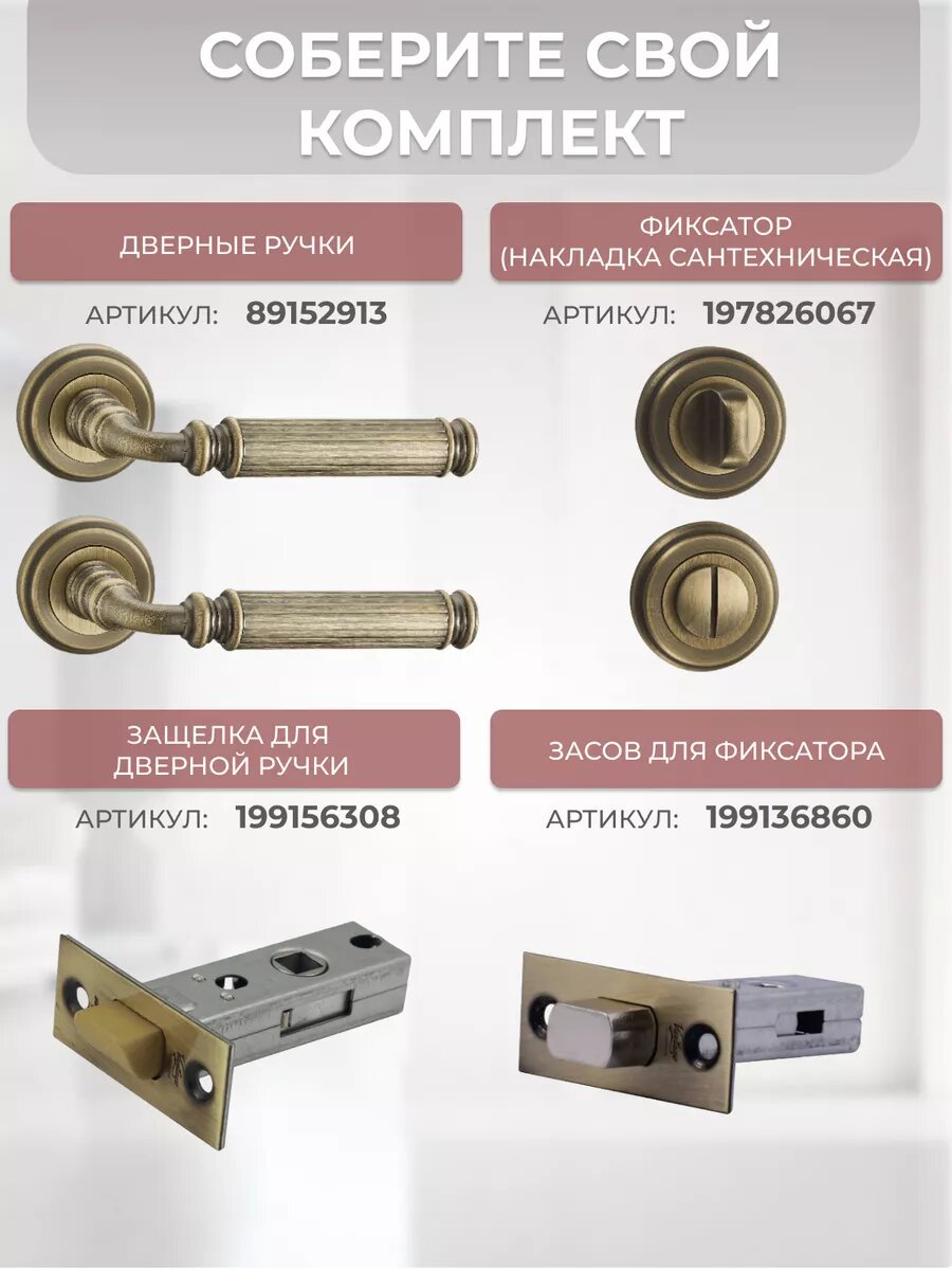 Ручка дверная межкомнатная медь с защелкой и заверткой без ключей комплект