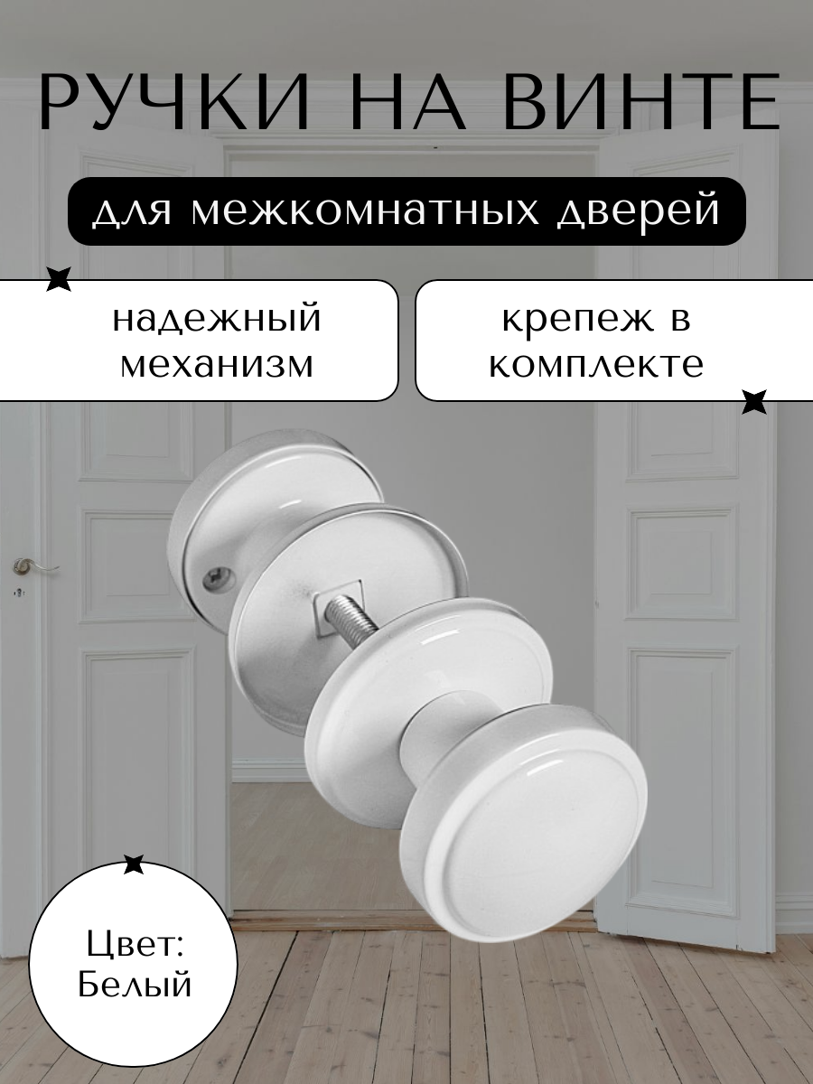СохранитьРучка дверная межкомнатная RV-02 White, сталь, на винте, круглая розетка интересное: