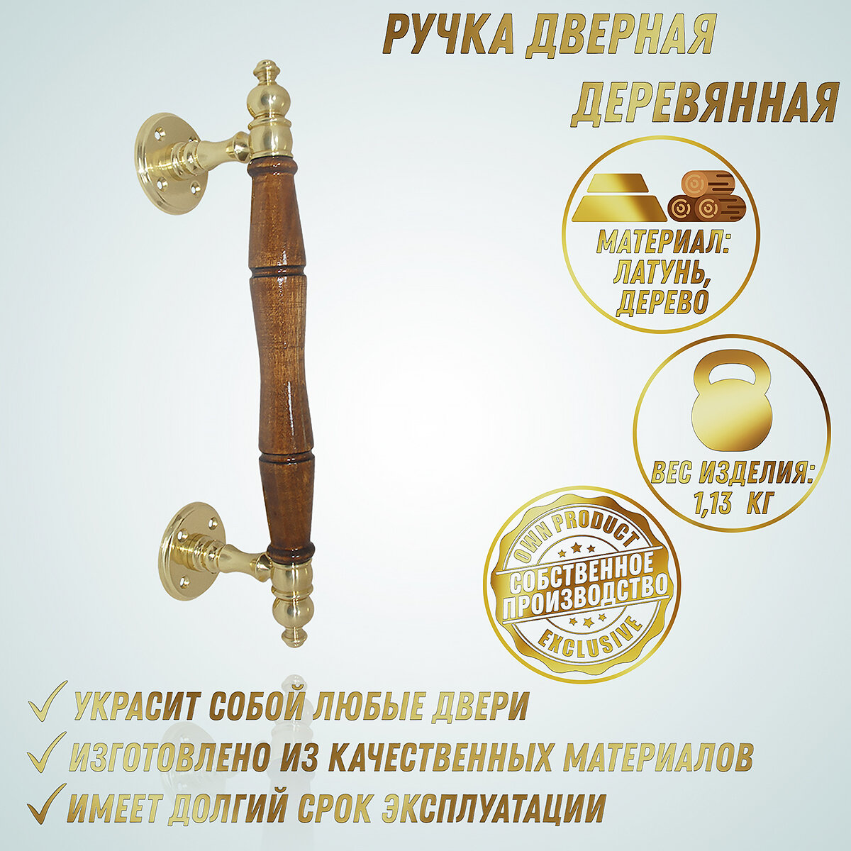Ручка дверная ПД-1/450 мм/ (латунь, дерево), фурнитура для дверей