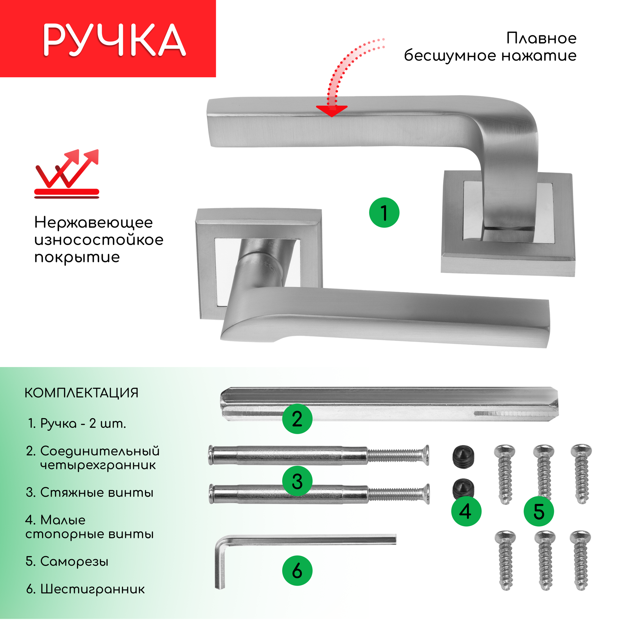Комплект для межкомнатной двери Rucetti ручки RAP 24 S SC + бесшумный замок / матовый хром