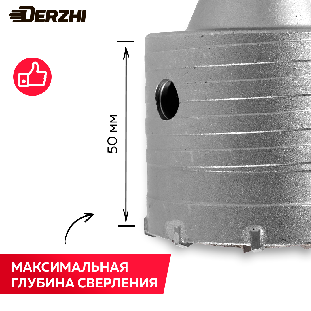 Коронка по кирпичу, камню, бетону для перфоратора, 50 мм, М22, SDS-plus, DERZHI