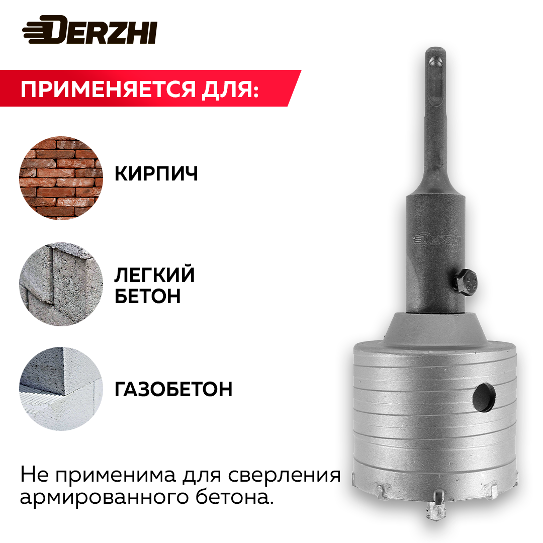 Коронка по кирпичу, камню, бетону для перфоратора, 80 мм, М22, SDS-plus, DERZHI