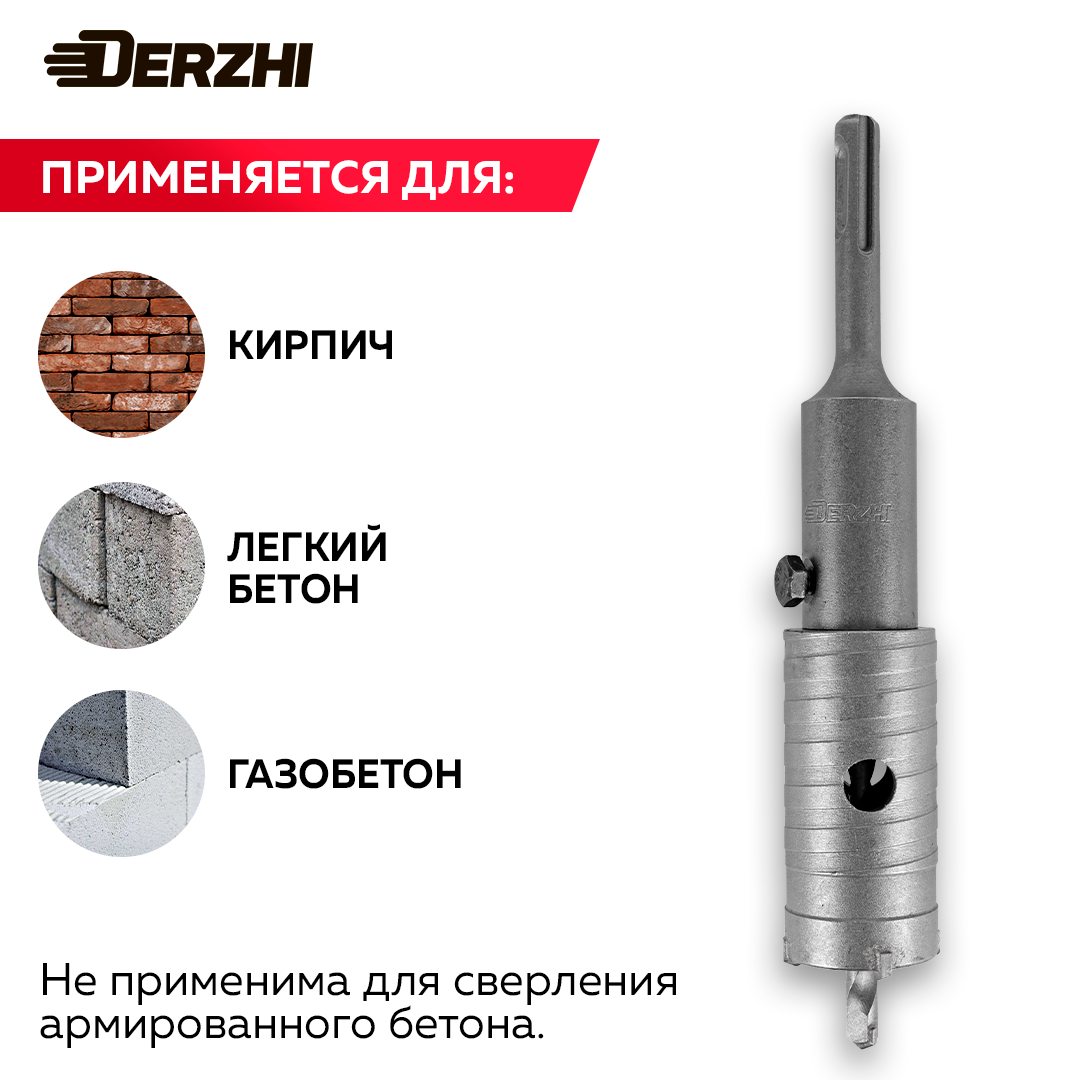 Коронка по кирпичу, камню, бетону для перфоратора, 45 мм, М22, SDS-plus, DERZHI