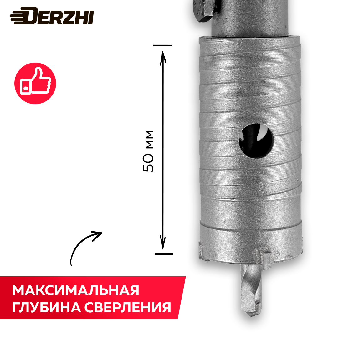 Коронка по кирпичу, камню, бетону для перфоратора, 50 мм, М22, SDS-plus, DERZHI