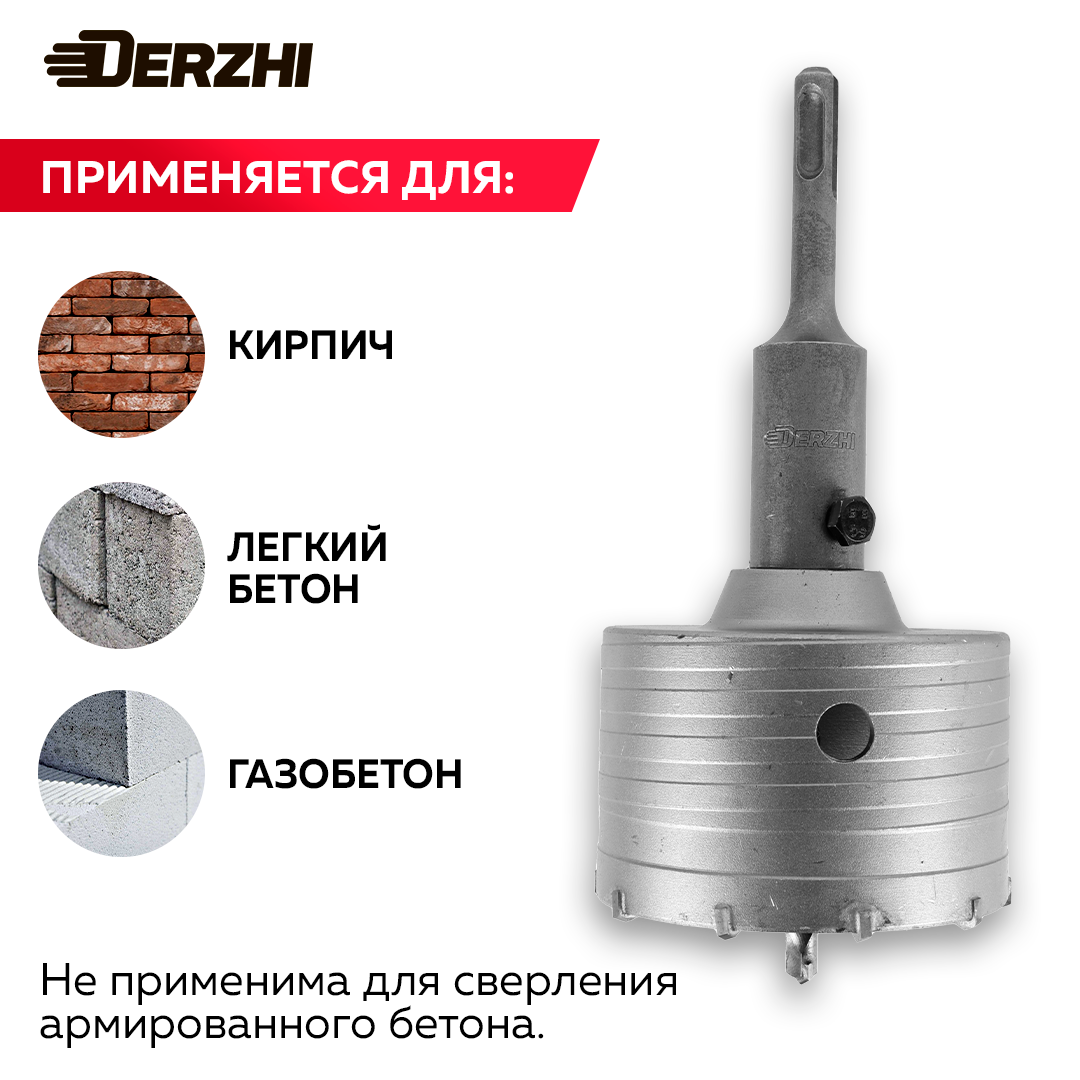 Коронка по кирпичу, камню, бетону для перфоратора, 100 мм, М22, DERZHI