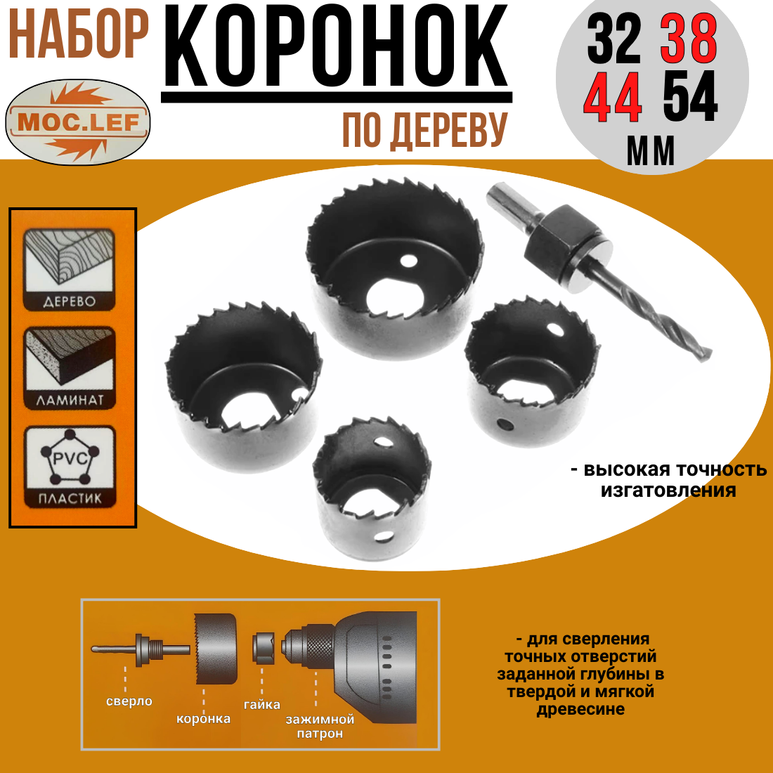 Коронка по дереву/набор 4шт, пластику и ламинату с центровочным сверлом (32, 38, 44, 54мм) MOC.LEF интересное: