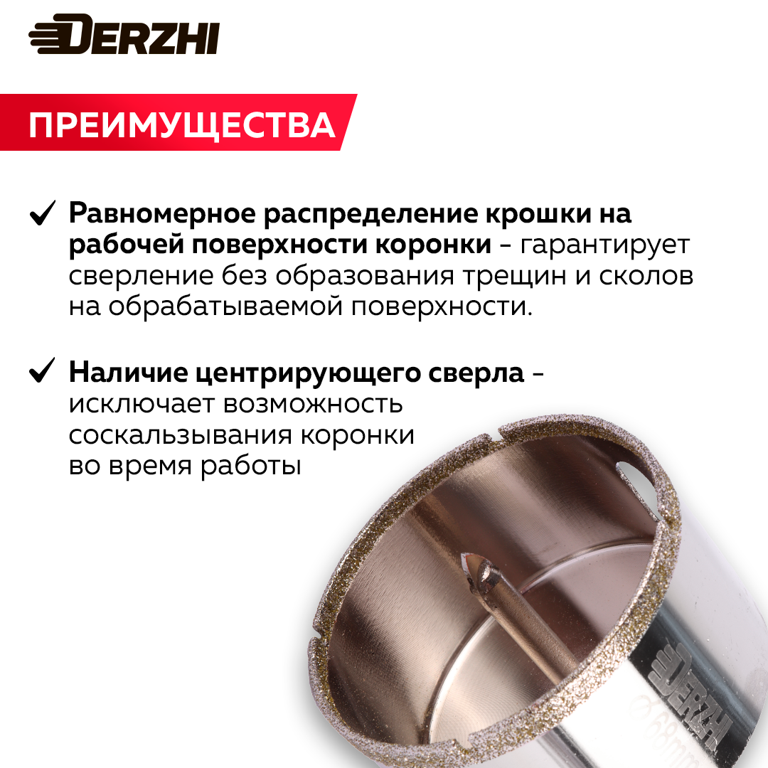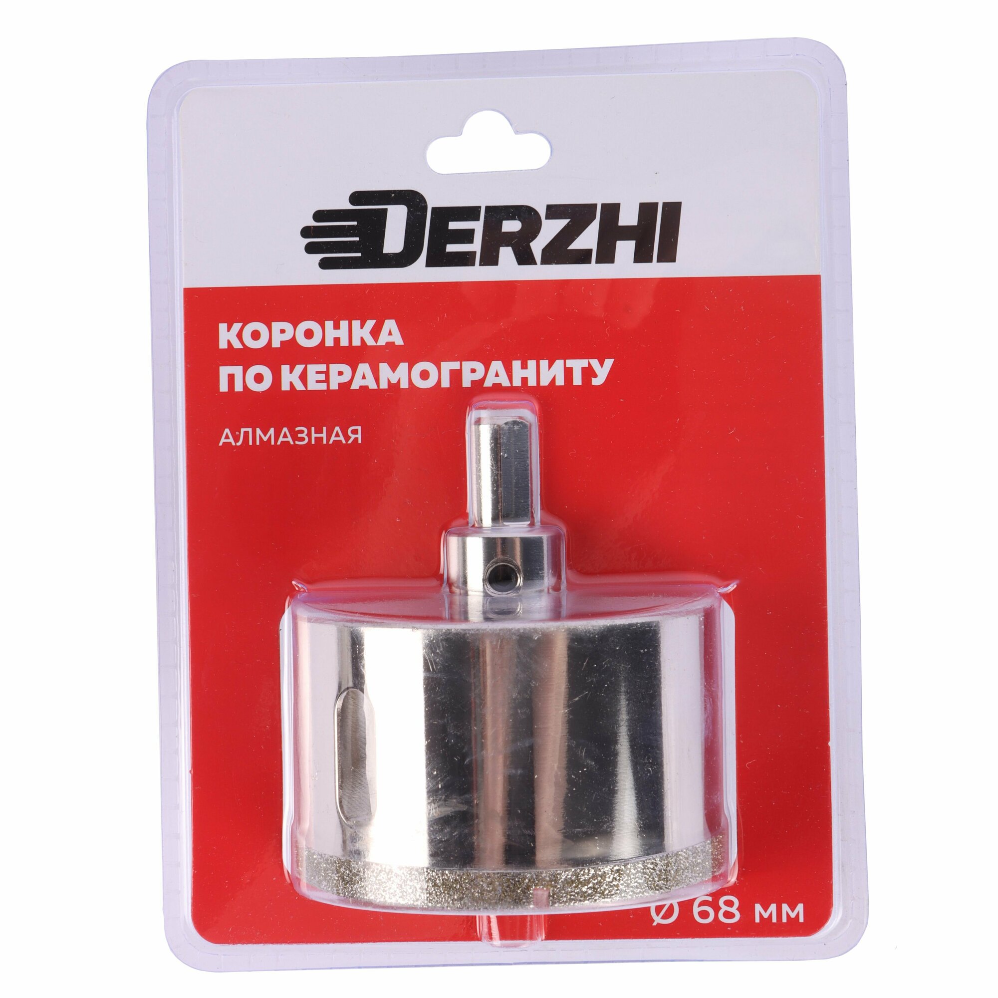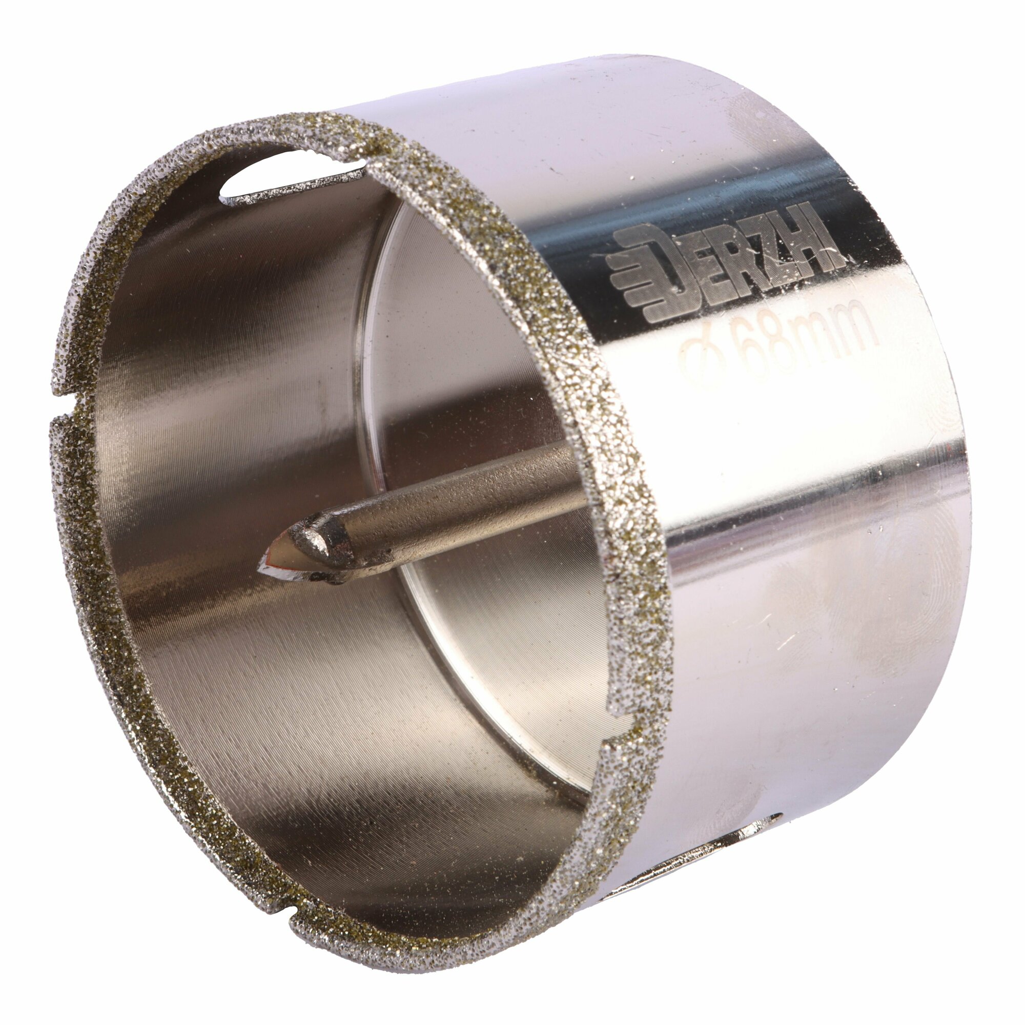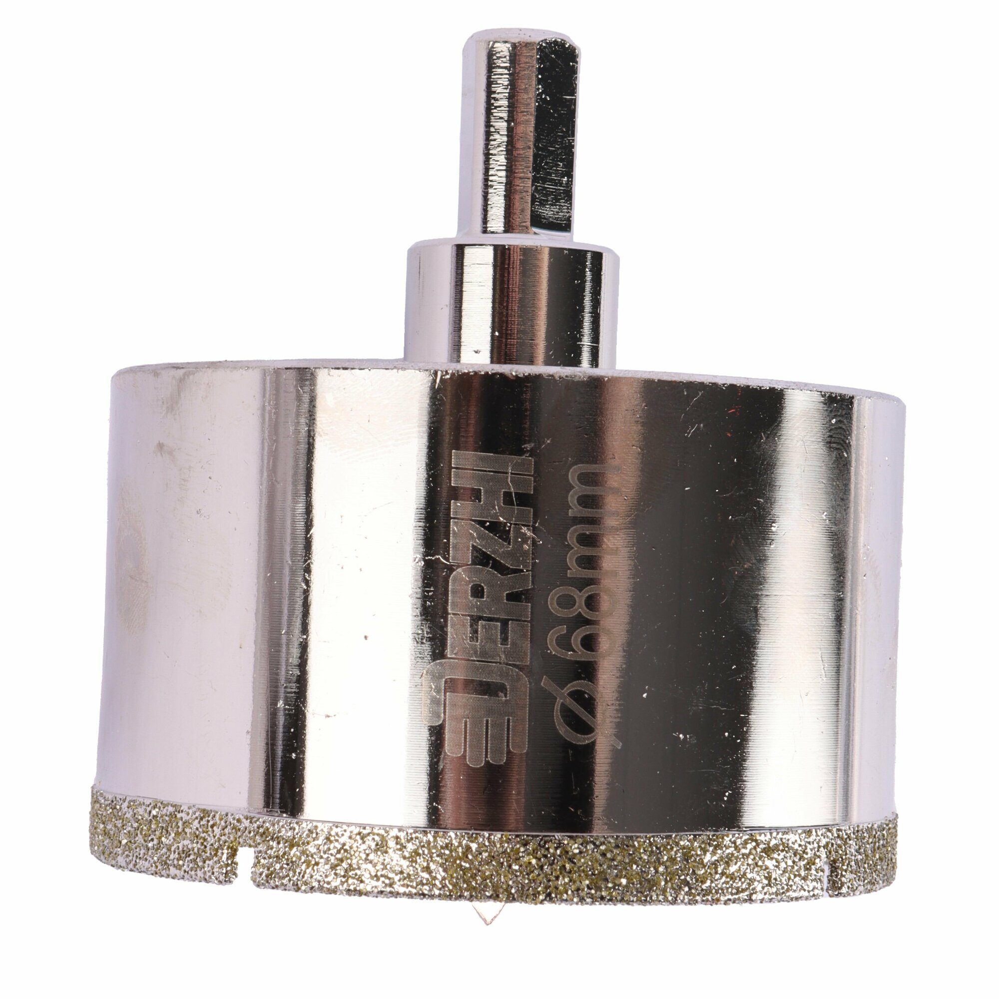 Купить Коронка алмазная с центровочным сверлом для керамики, стекла, керамогранита, 68 мм DERZHI