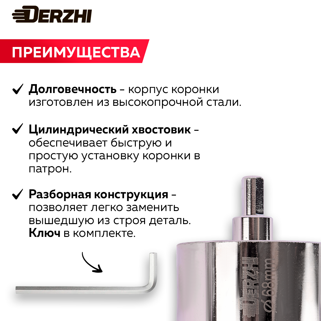 Ниже Вы можете прочитать отзывы на Коронка алмазная с центровочным сверлом для керамики, стекла, керамогранита, 68 мм DERZHI, ознакомится с подробными характеристиками, посмотреть интересные обзоры и фотографии на Коронка алмазная с центровочным сверлом для керамики, стекла, керамогранита, 68 мм DERZHI.