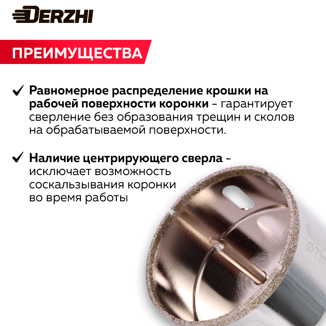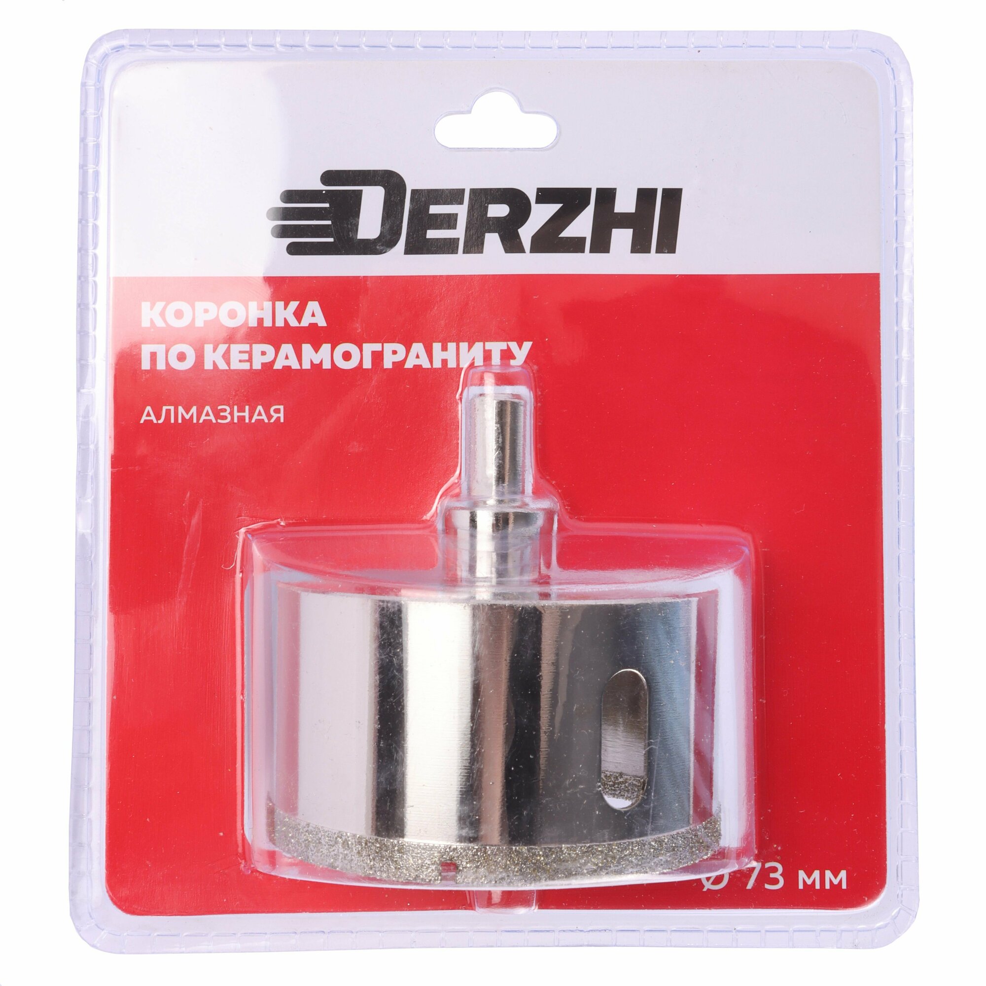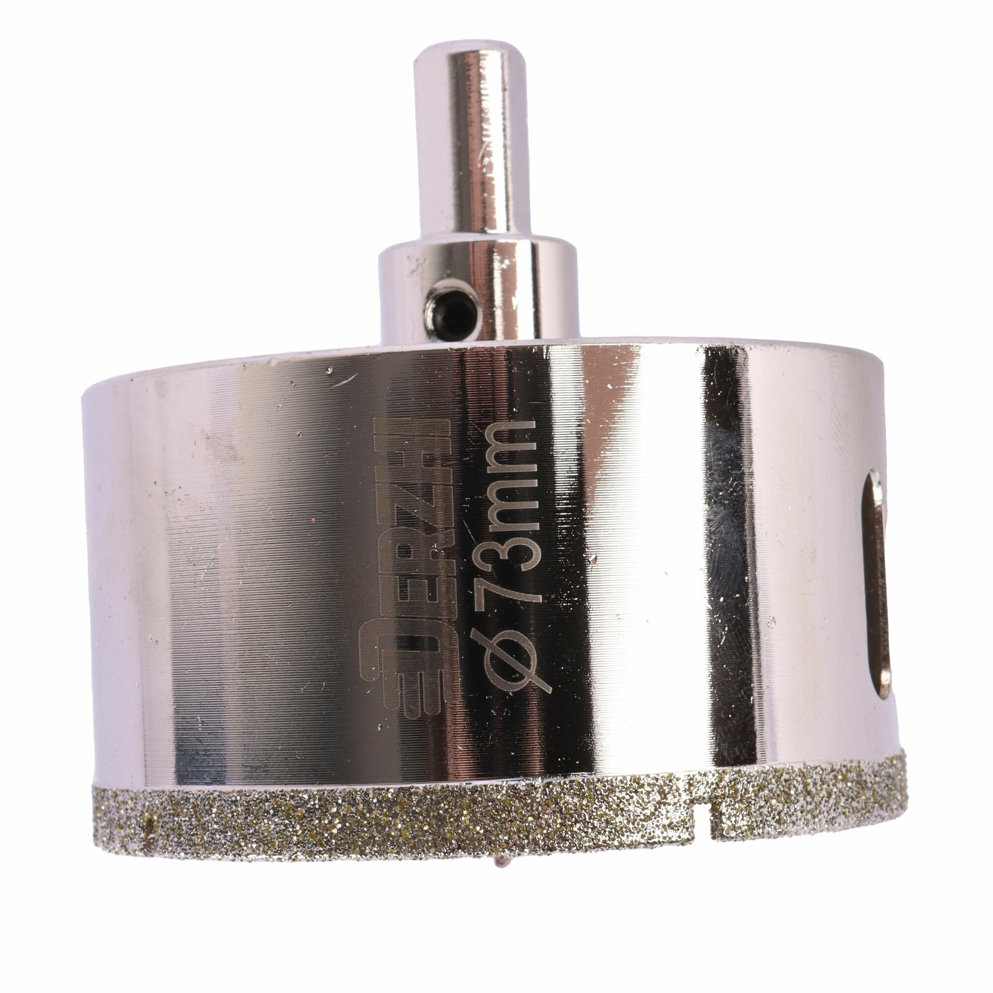 Купить Коронка алмазная с центровочным сверлом для керамики, стекла, керамогранита, 73 мм DERZHI