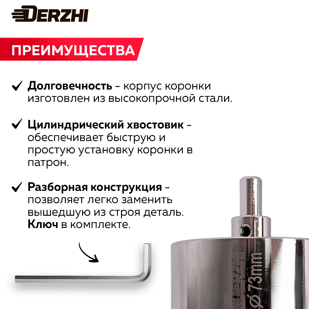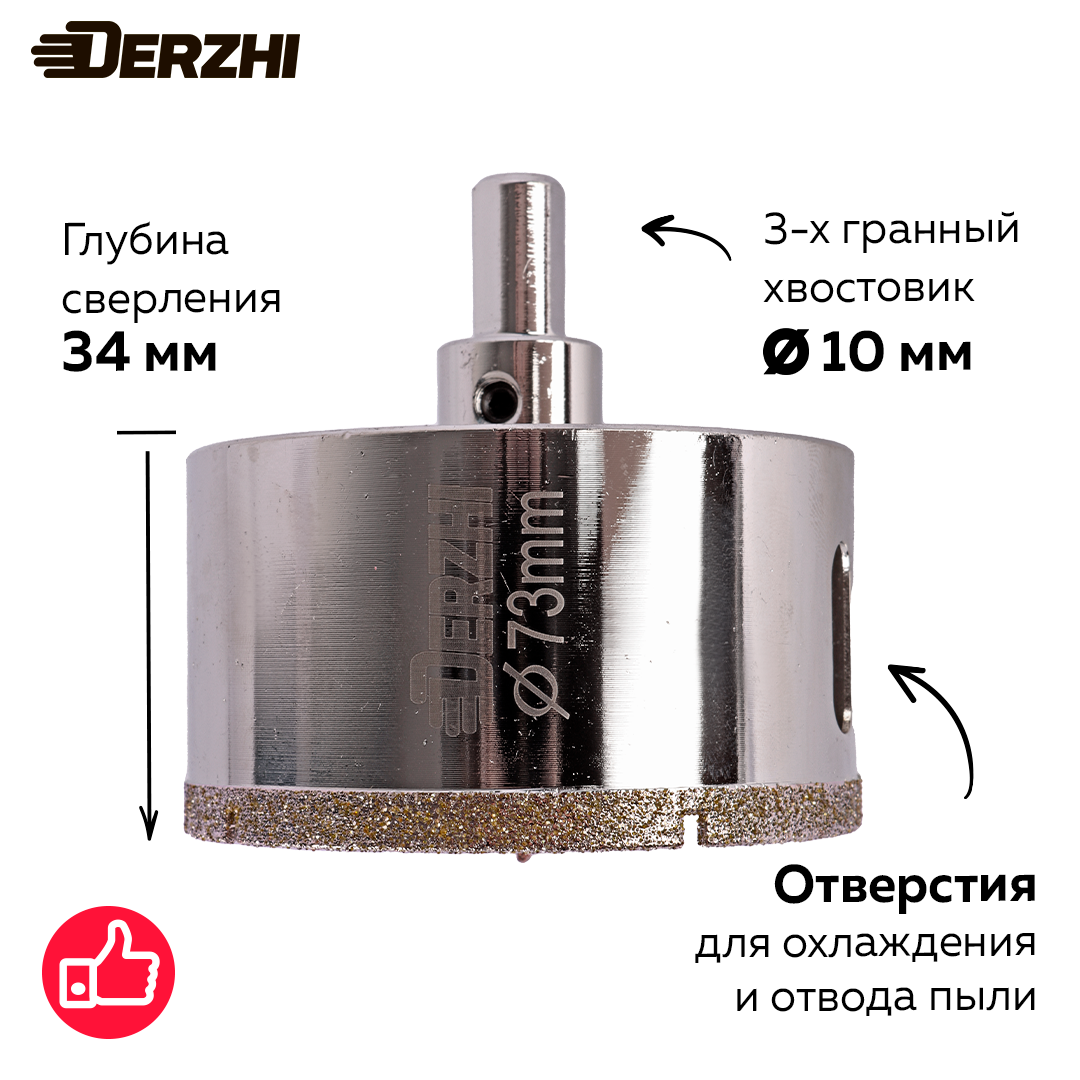 Ниже Вы можете прочитать отзывы на Коронка алмазная с центровочным сверлом для керамики, стекла, керамогранита, 73 мм DERZHI, ознакомится с подробными характеристиками, посмотреть интересные обзоры и фотографии на Коронка алмазная с центровочным сверлом для керамики, стекла, керамогранита, 73 мм DERZHI.