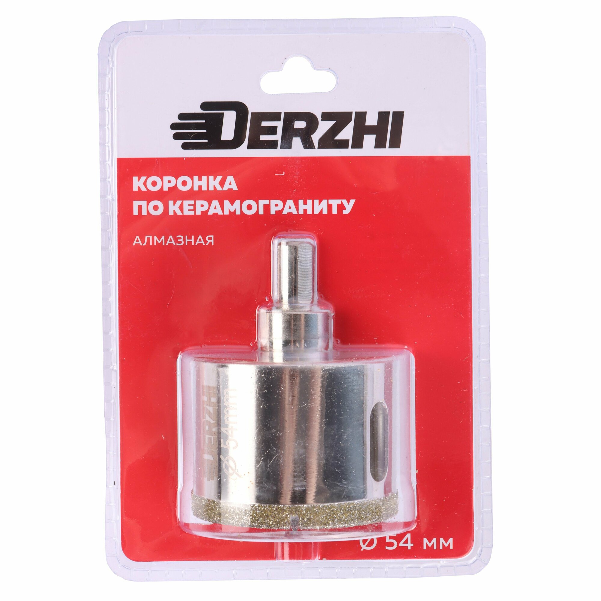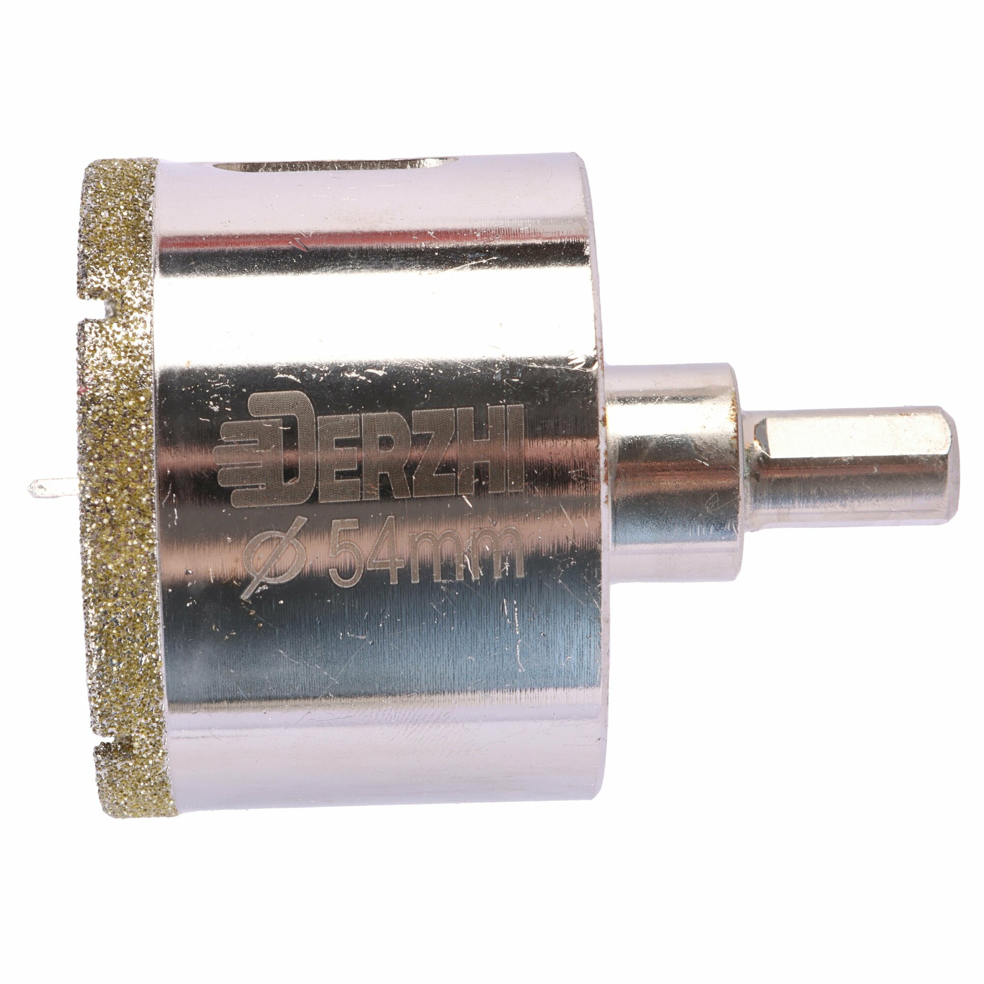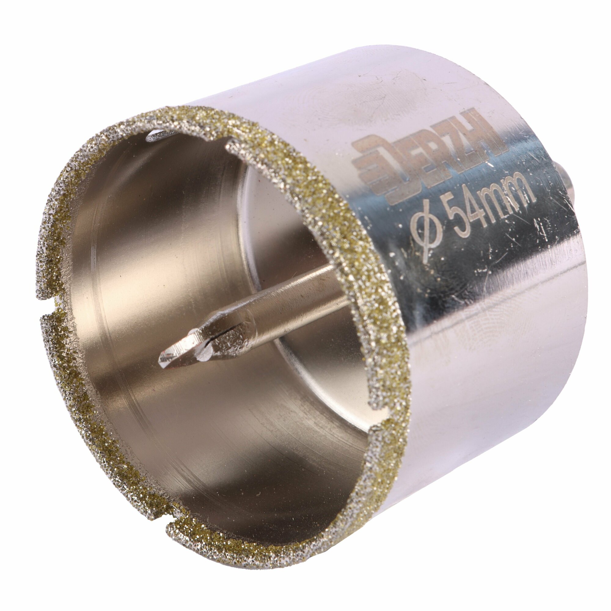 Купить Коронка алмазная с центровочным сверлом для керамики, стекла, керамогранита, 54 мм DERZHI