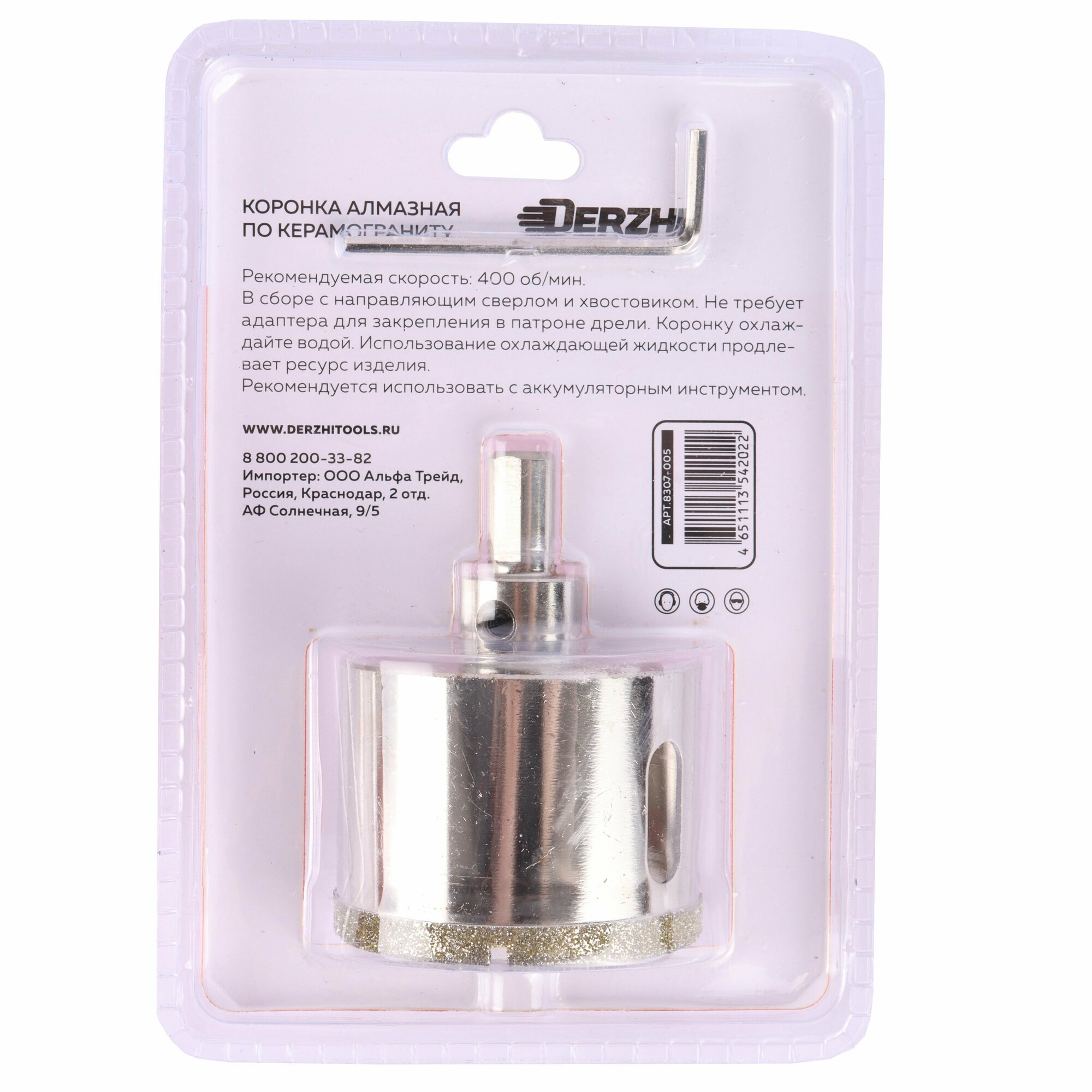 Коронка алмазная с центровочным сверлом для керамики, стекла, керамогранита, 64 мм DERZHI