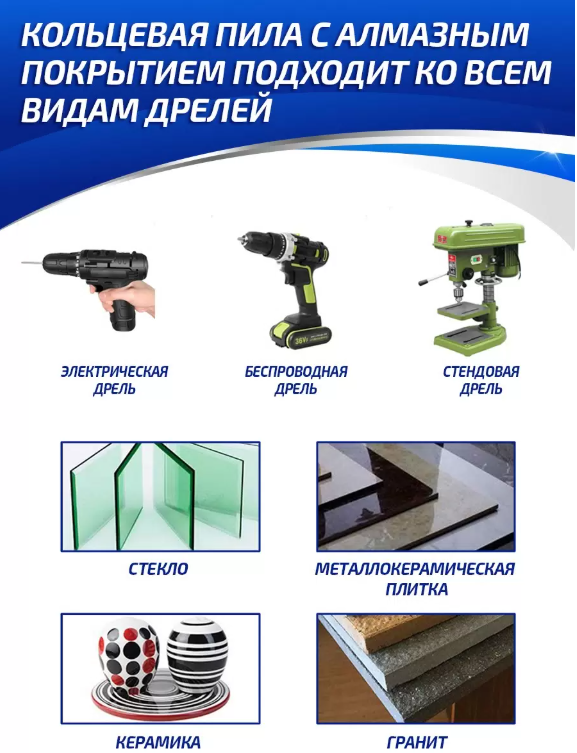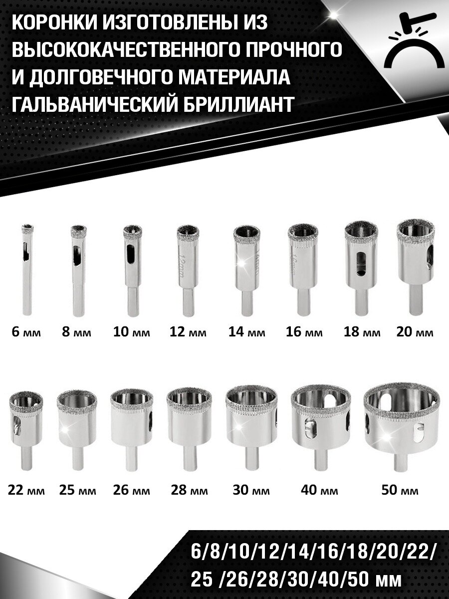 Набор коронок алмазных 15 штук, по керамической плитке, стеклу, керамограниту интересное: