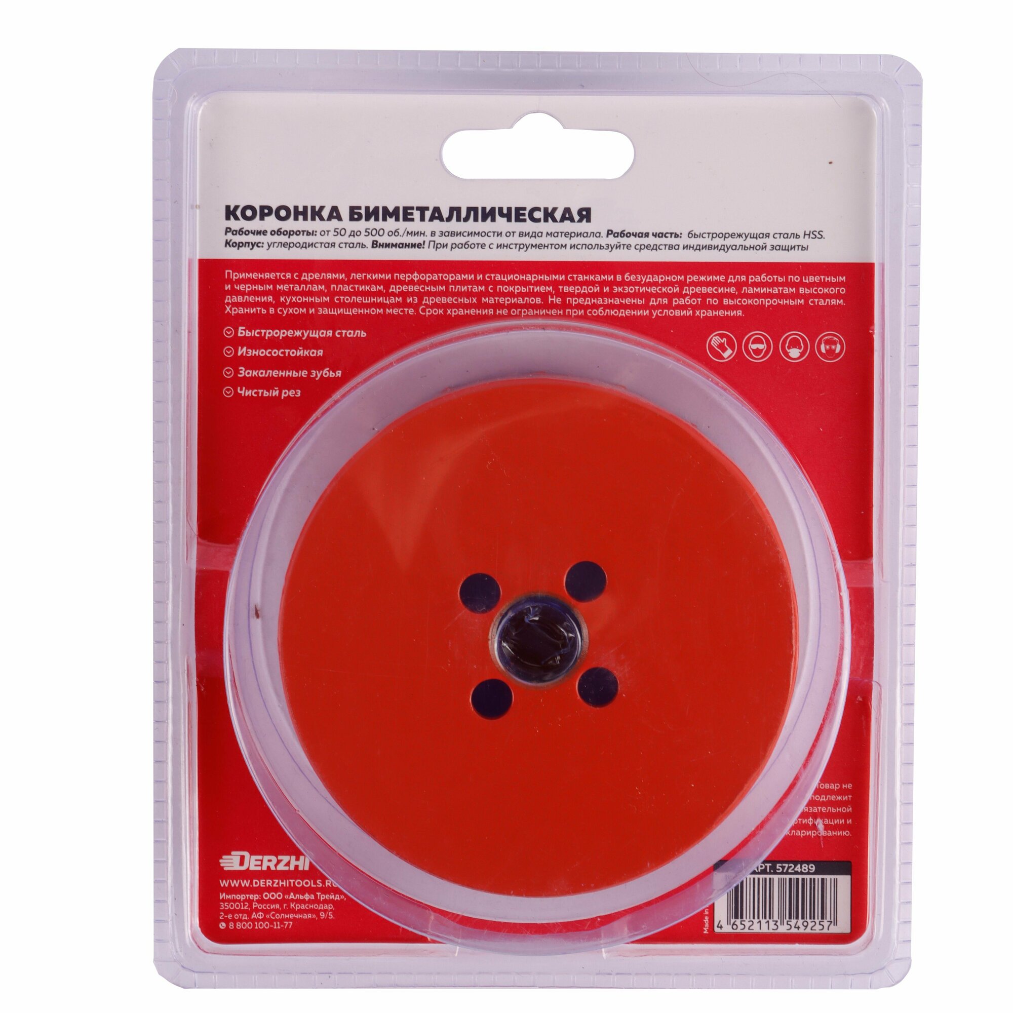 Коронка биметаллическая по металлу, дереву, пластику, 115 мм, Derzhi