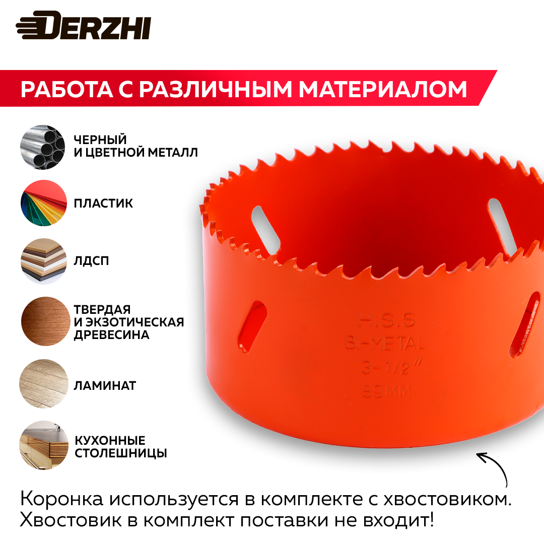 Коронка биметаллическая по металлу, дереву, пластику, 89 мм, Derzhi интересное: