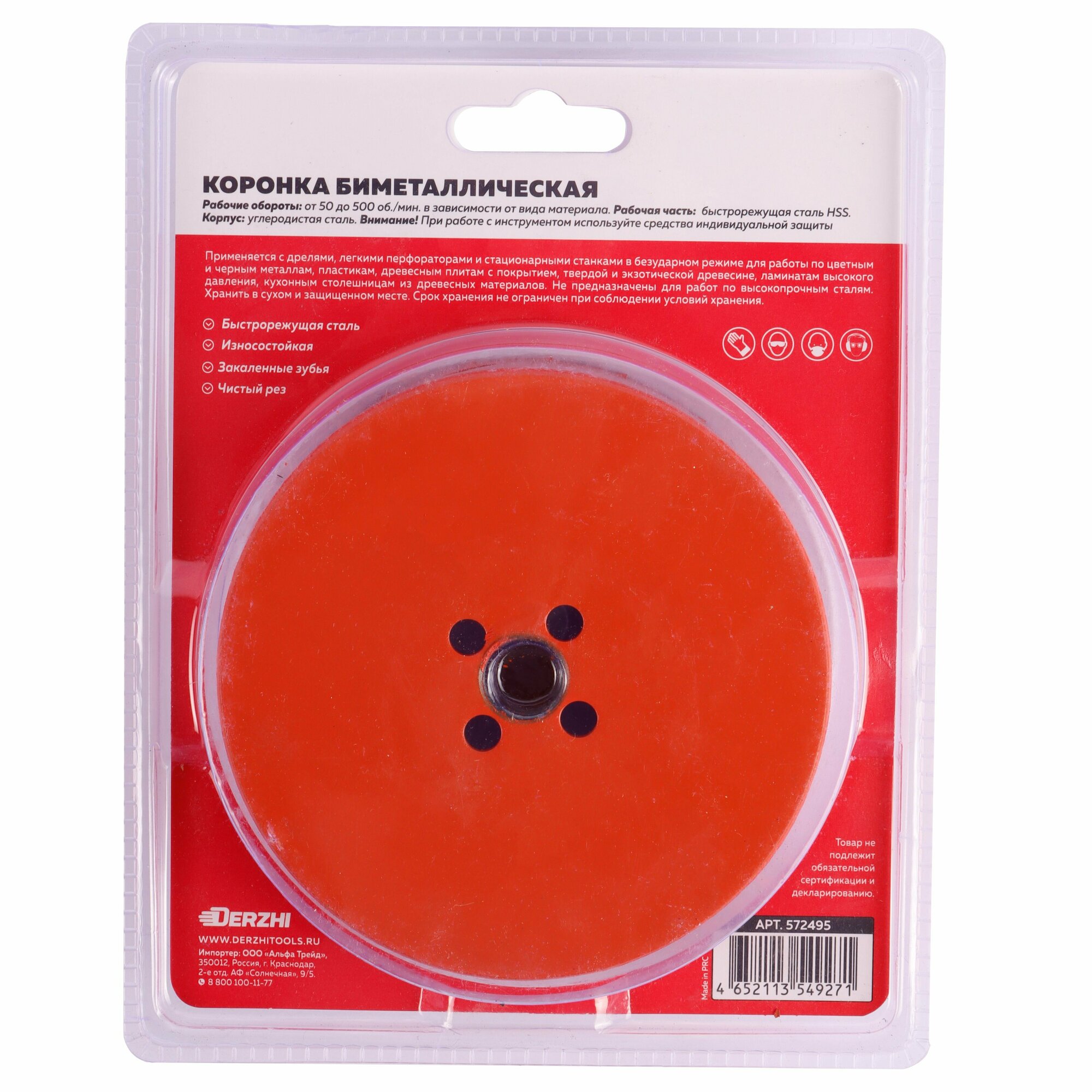 Купить Коронка биметаллическая по металлу, дереву, пластику, 115 мм, Derzhi
