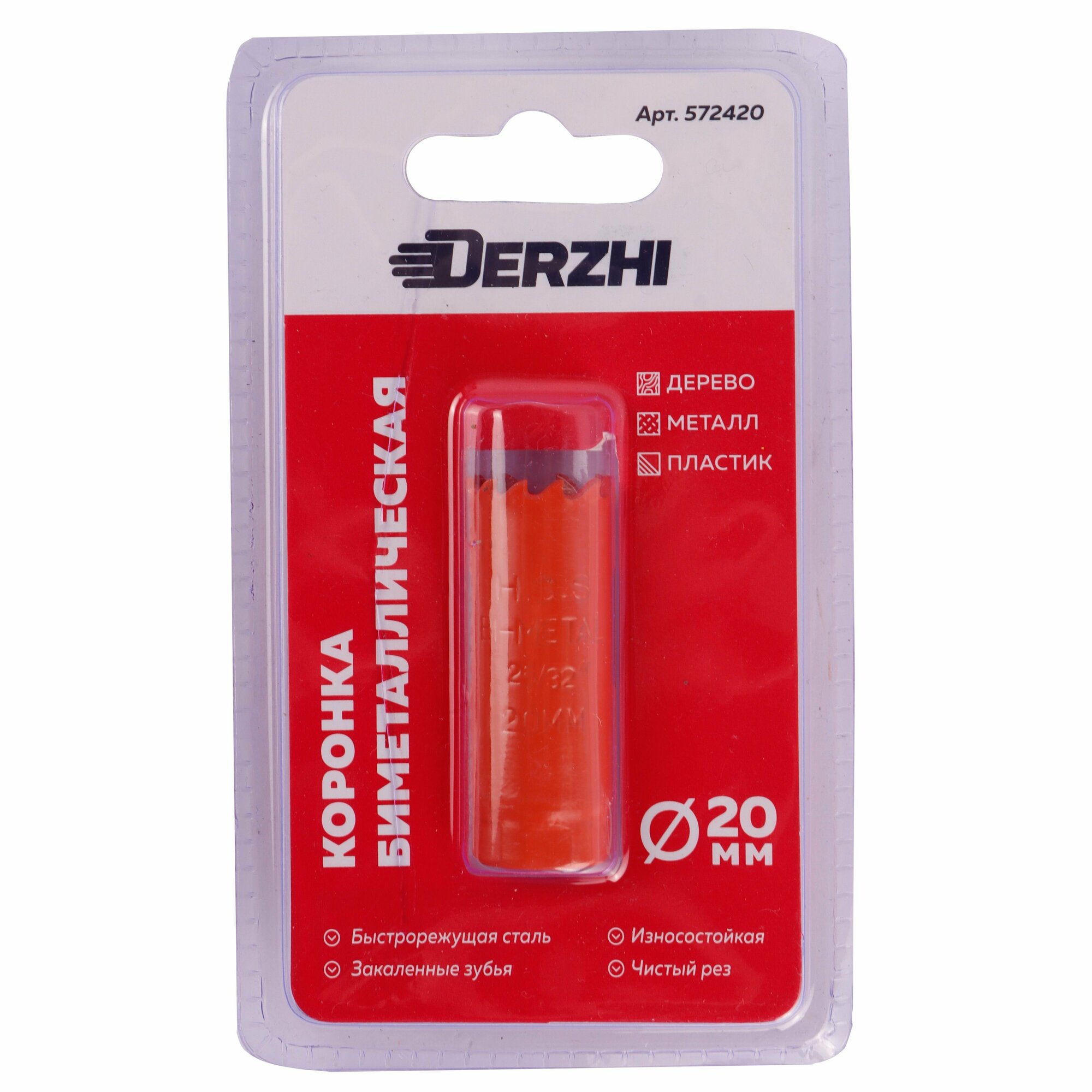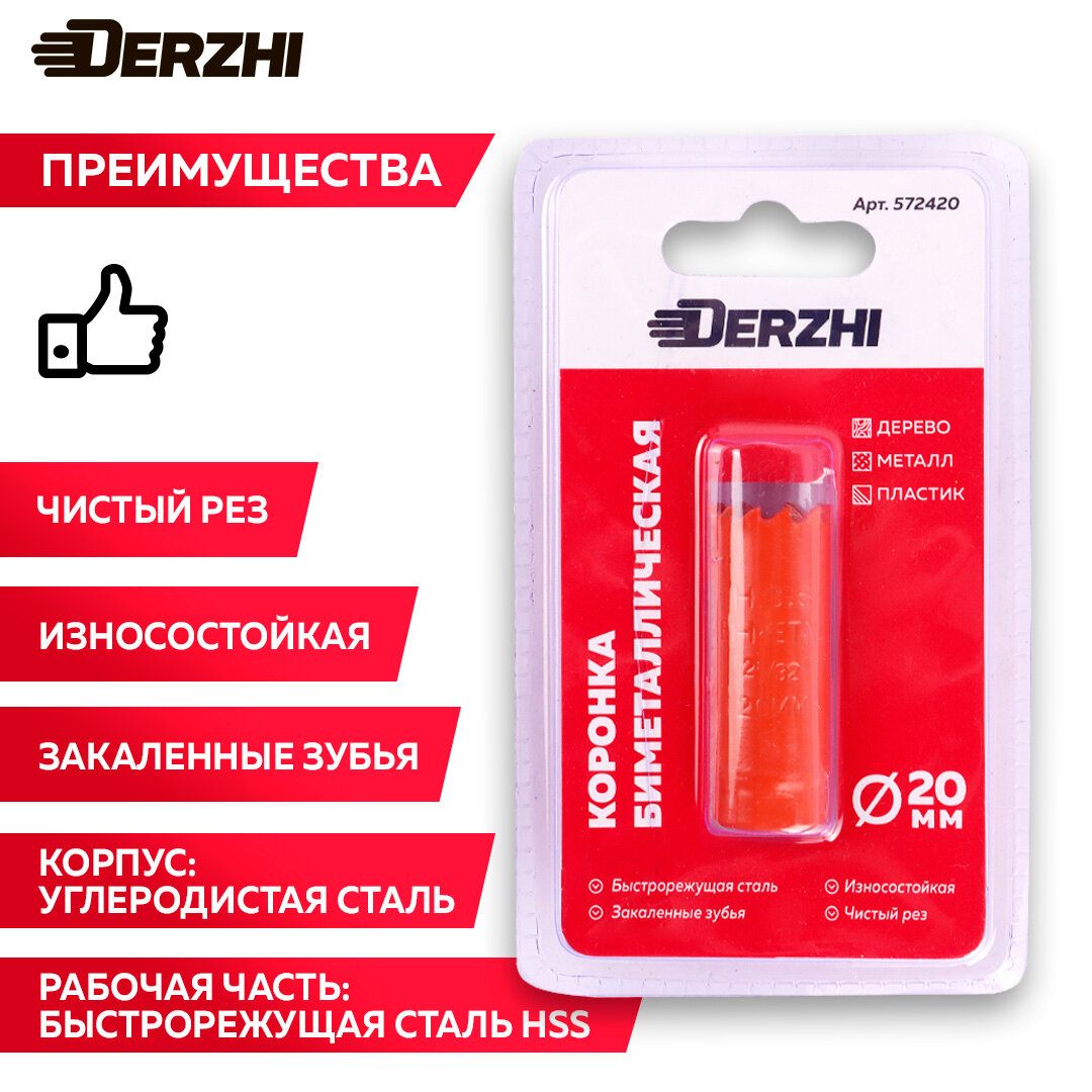 Купить Коронка биметаллическая по металлу, дереву, пластику, 20 мм, Derzhi
