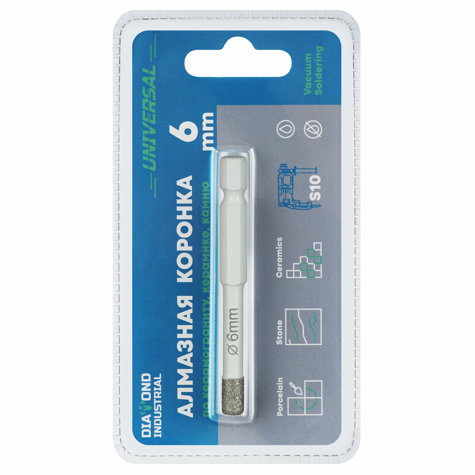 Купить Алмазная коронка по керамограниту, керамике и камню 6 мм Universal Diamond Industrial, вакуумная пайка, 1/4" HEX