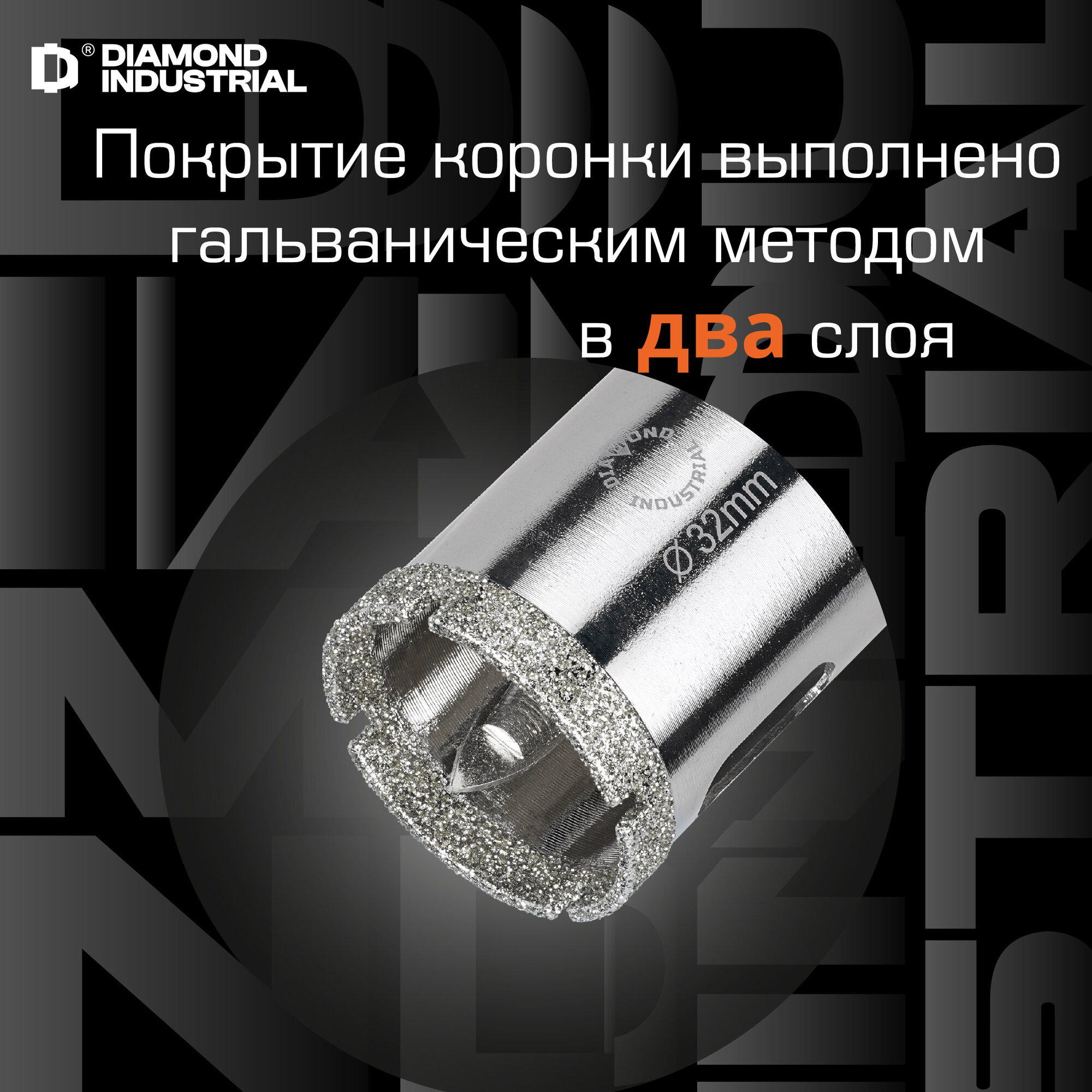 СохранитьАлмазная коронка по керамограниту, плитке, кафелю 32 мм с центром Diamond Industrial интересное: