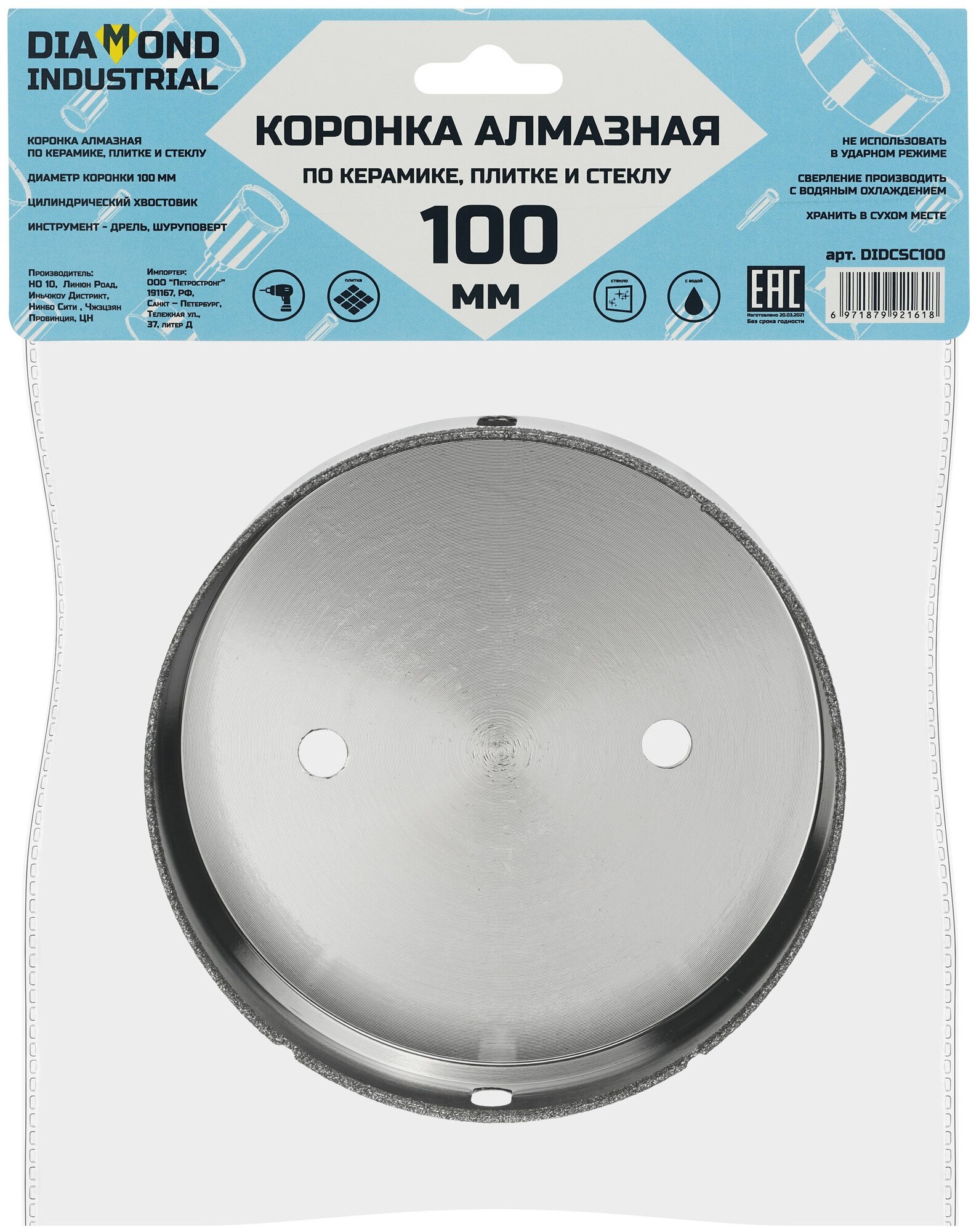 СохранитьАлмазная коронка по керамике, плитке и стеклу 100 мм Diamond Industrial интересное: