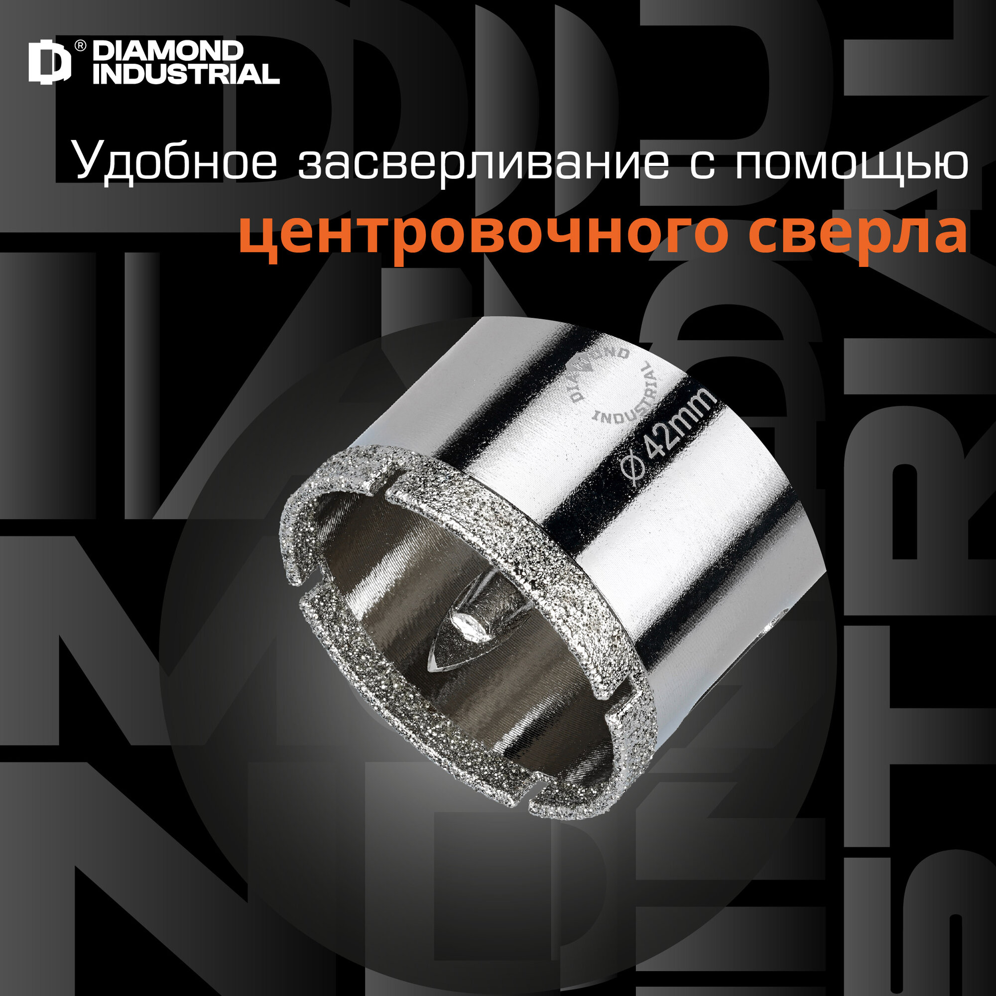 СохранитьАлмазная коронка по керамограниту, плитке, кафелю 42 мм с центром Diamond Industrial интересное: