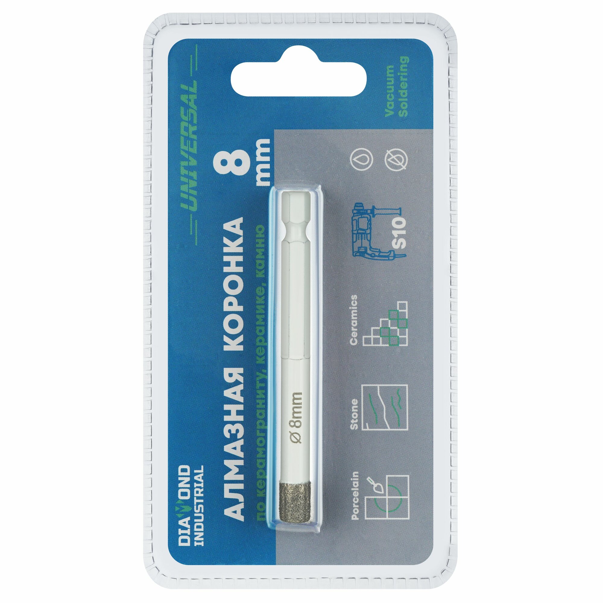 Купить Алмазная коронка по керамограниту, керамике и камню 8 мм Universal Diamond Industrial, вакуумная пайка, 1/4" HEX