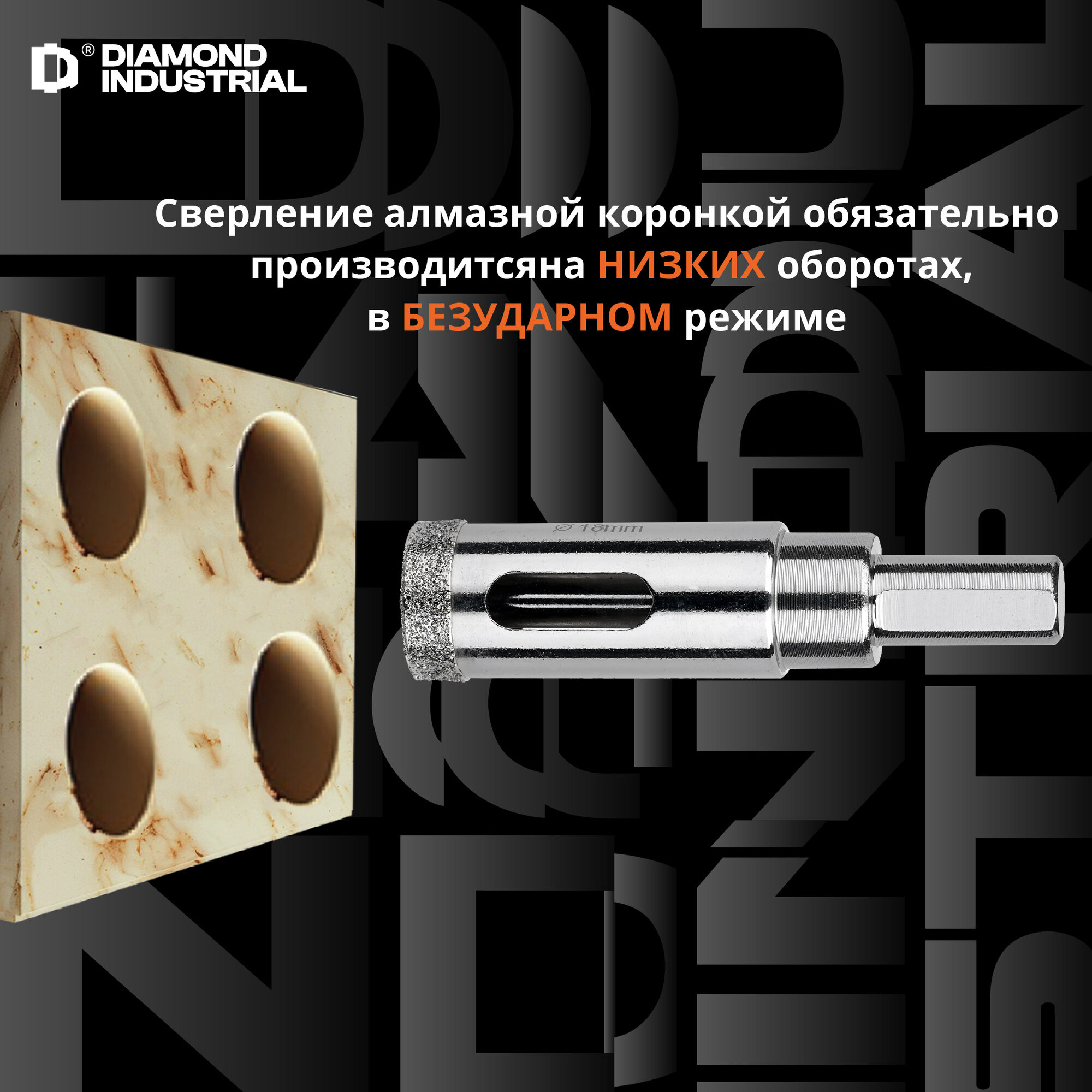 СохранитьАлмазная коронка по керамограниту, плитке, кафелю 18 мм с центром Diamond Industrial интересное: