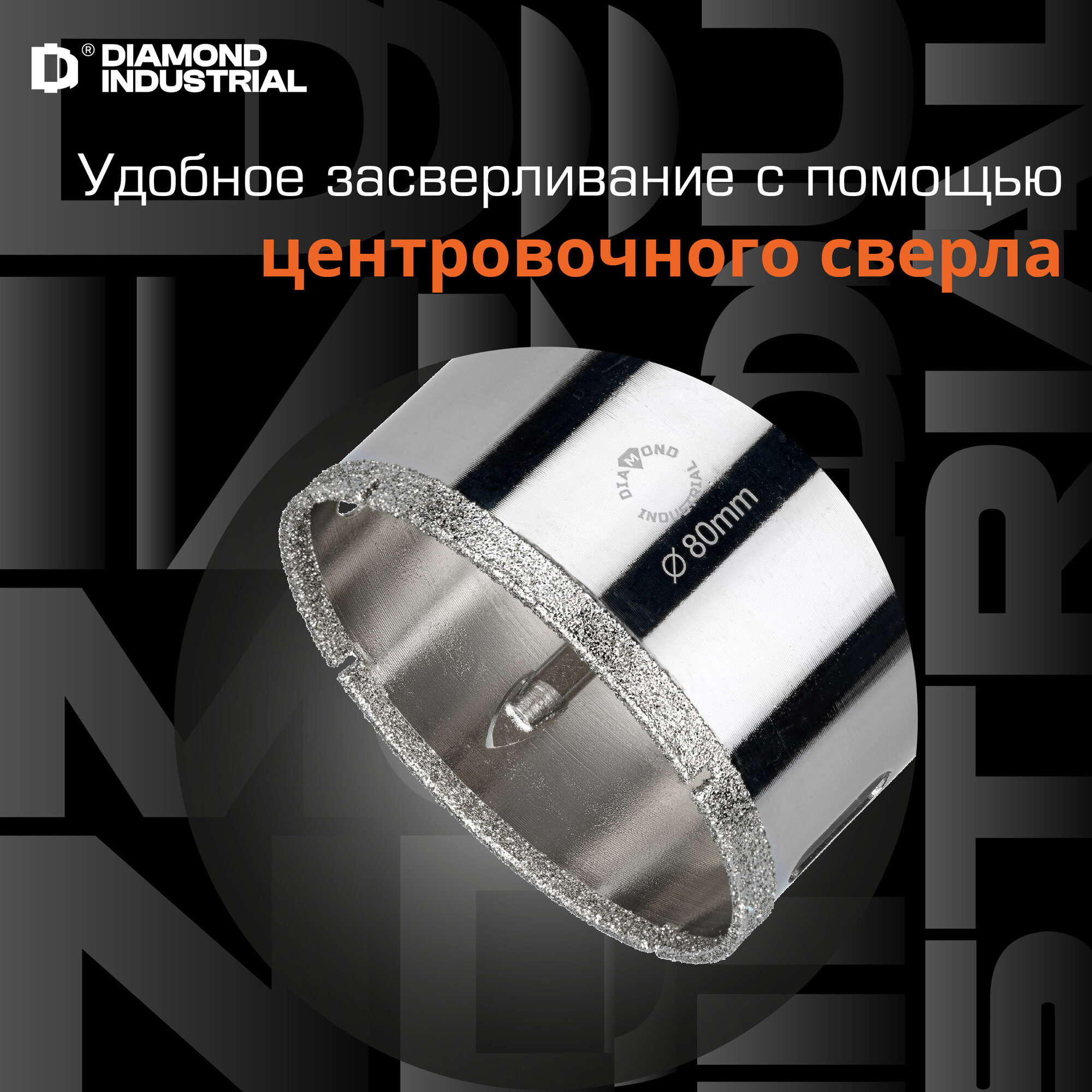СохранитьАлмазная коронка по керамограниту, плитке, кафелю 80 мм с центром Diamond Industrial интересное: