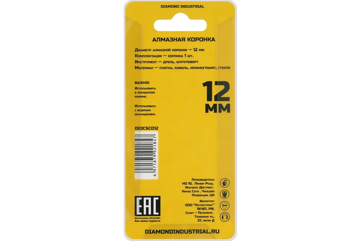 Купить Коронка алмазная по керамограниту и керамике 12 мм / 2шт. Diamond Industrial DIDCSC012