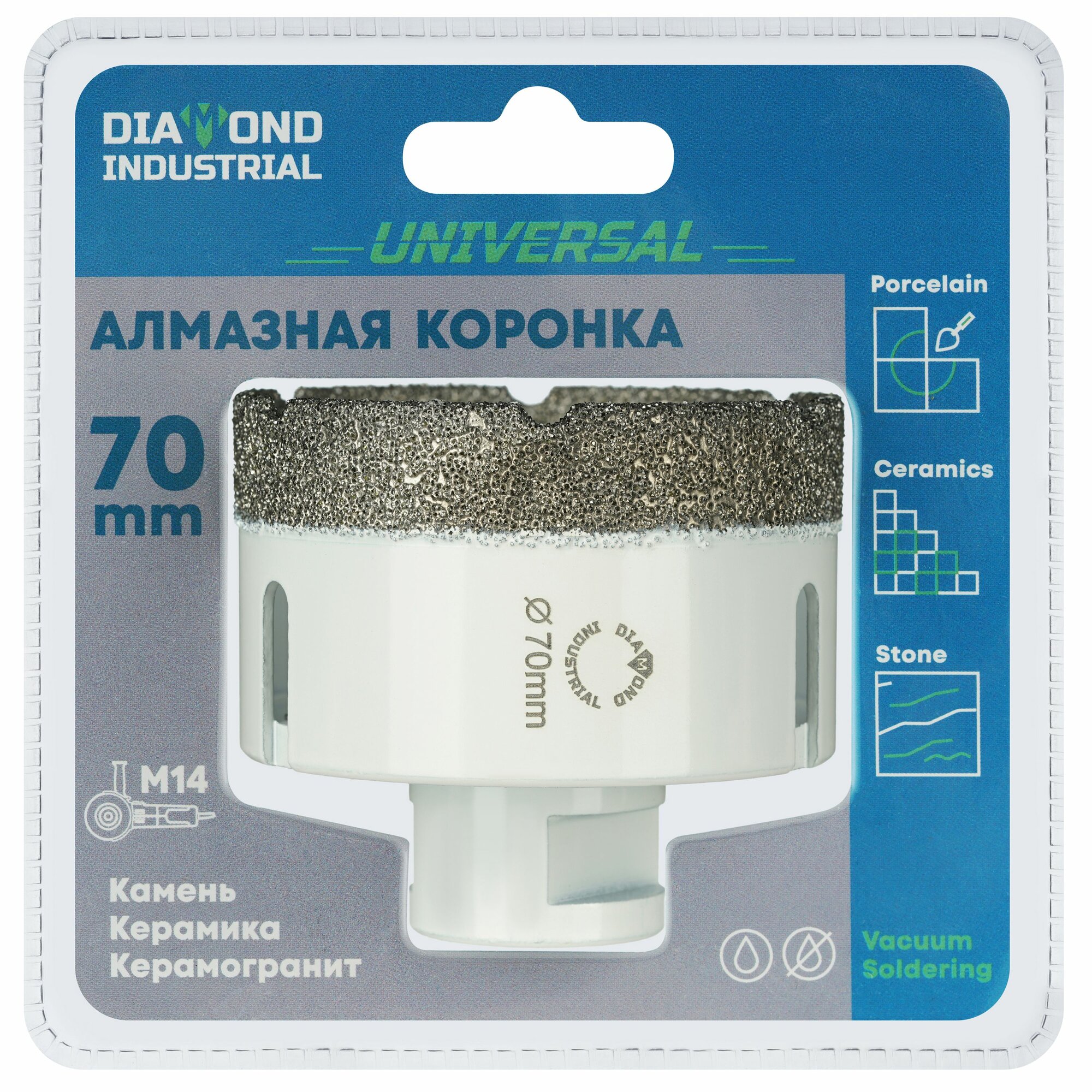 Купить Алмазная коронка по керамограниту, керамике и камню 70 мм Universal Diamond Industrial, вакуумная пайка, M14