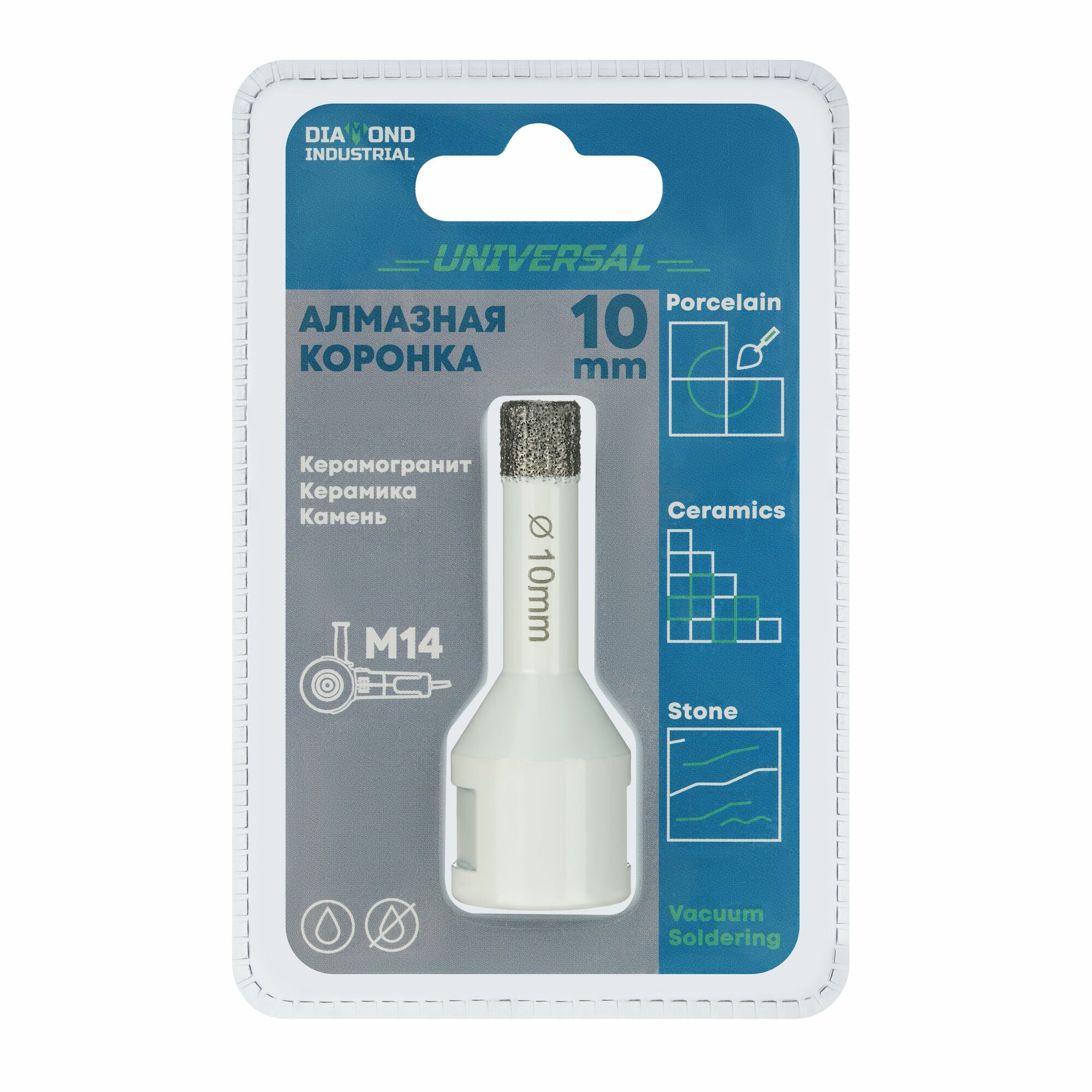 Купить Алмазная коронка по керамограниту, керамике и камню 10 мм Universal Diamond Industrial, вакуумная пайка, M14