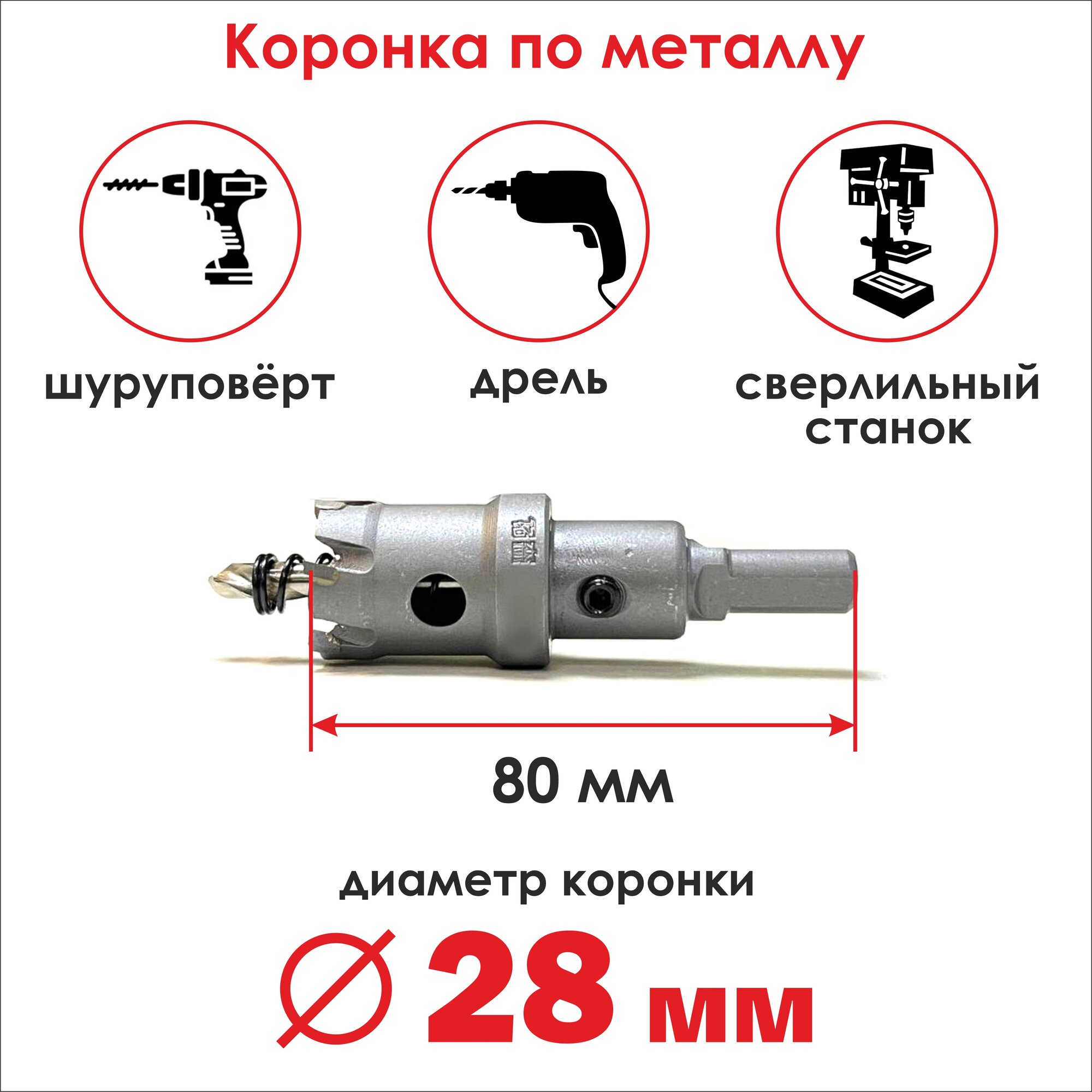 Купить Коронка твердосплавная по металлу 28х80 мм, бур/ сверло для резки металла