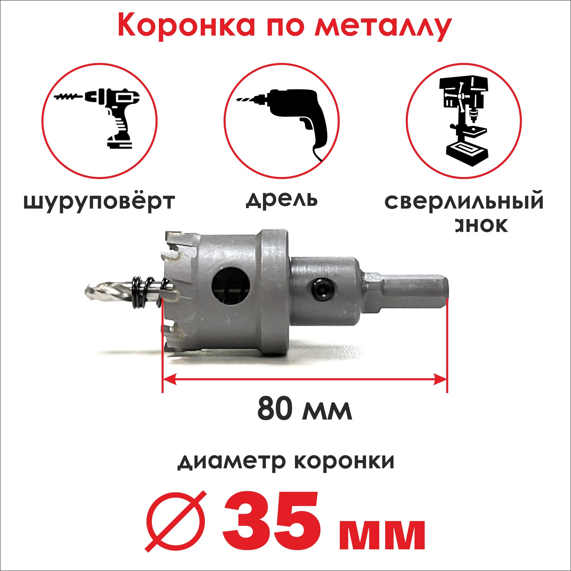 Купить Коронка твердосплавная по металлу 35х80 мм, бур/ сверло для резки металла