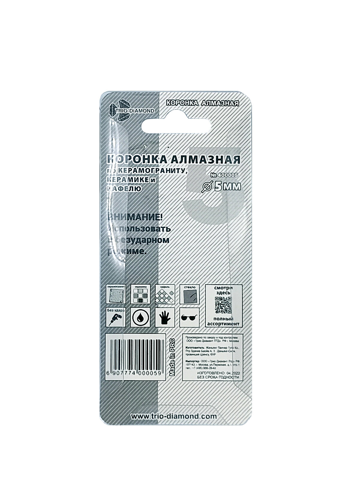 Коронка Trio Diamond 450005, алмазная, универсальная, 5мм, сухое сверление