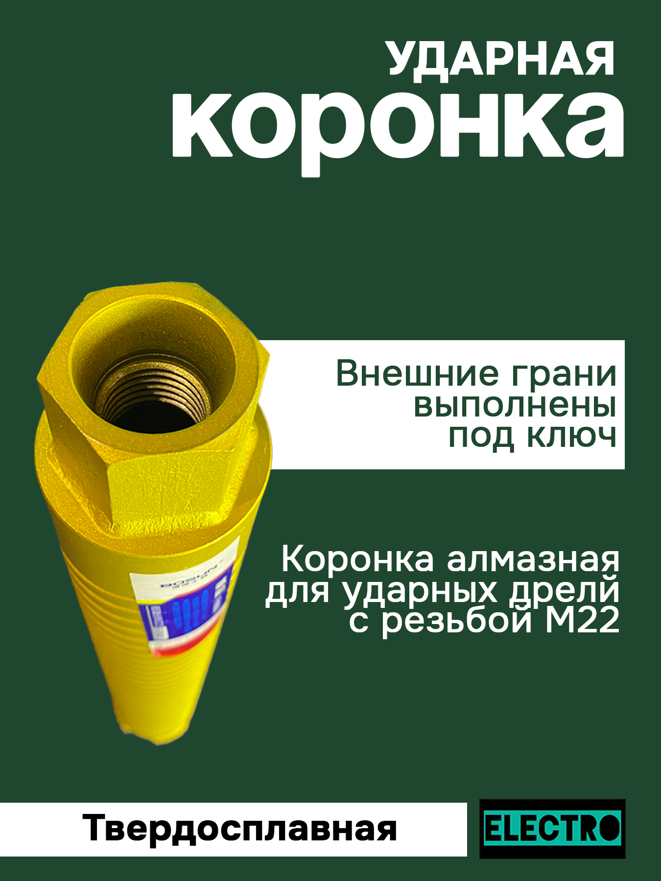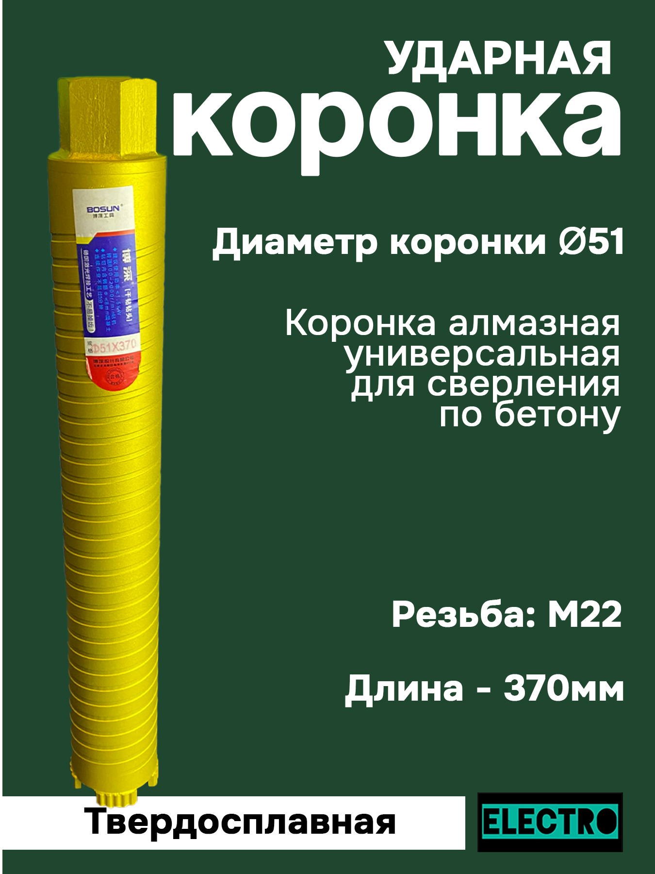 Коронка твердосплавная, алмазная, ударная, диаметром 51, длина 370мм интересное: