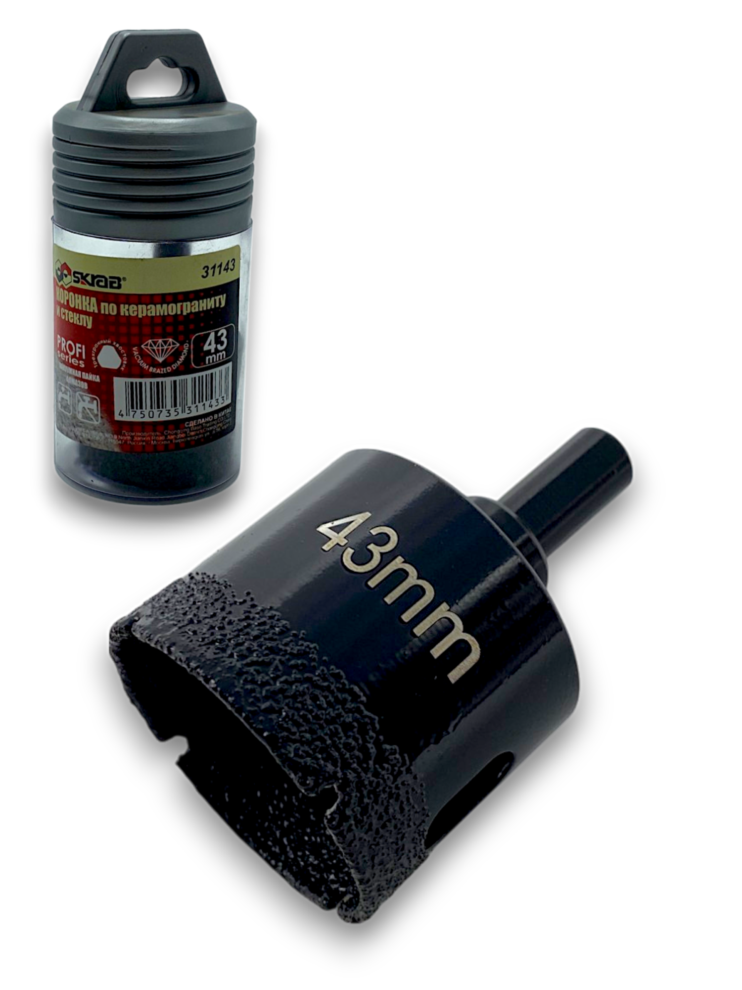 Коронка алмазная Твердосплав 43 мм по керамограниту и мрамору Skrab 33743