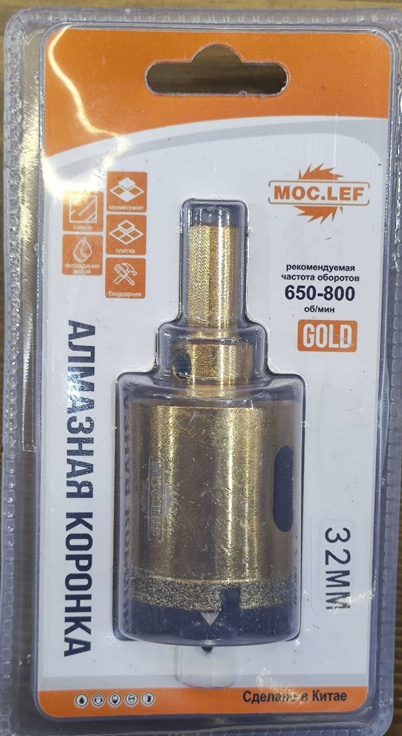 Коронка алмазная с центрирующим сверлом 32мм GOLD/керамогранит, плитка, стекло/MOC. LEF интересное: