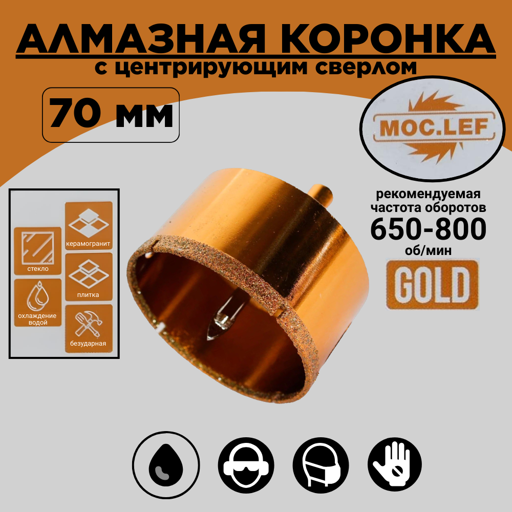 Коронка алмазная с центрирующим сверлом 70мм GOLD/керамогранит, плитка, стекло/MOC. LEF интересное: