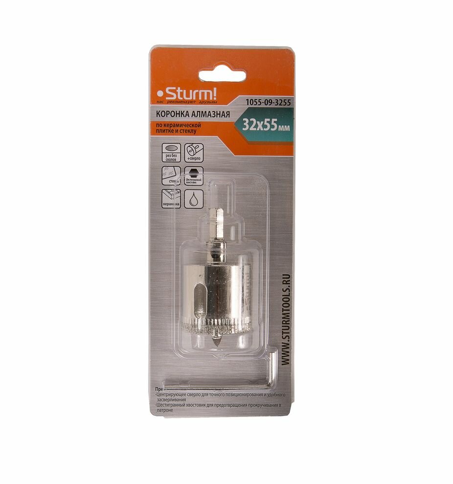 Купить Коронка алмазная по керамике и стеклу (32х55мм, центр. сверло) STURM 1055-09-3255