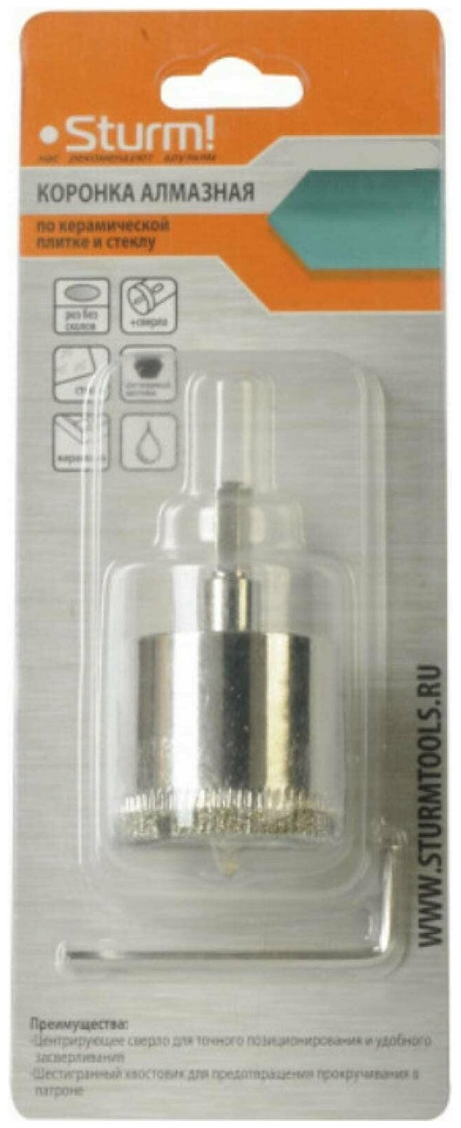 Коронка алмазная по керамике и стеклу (60х55мм, центр. сверло) STURM 1055-09-6055