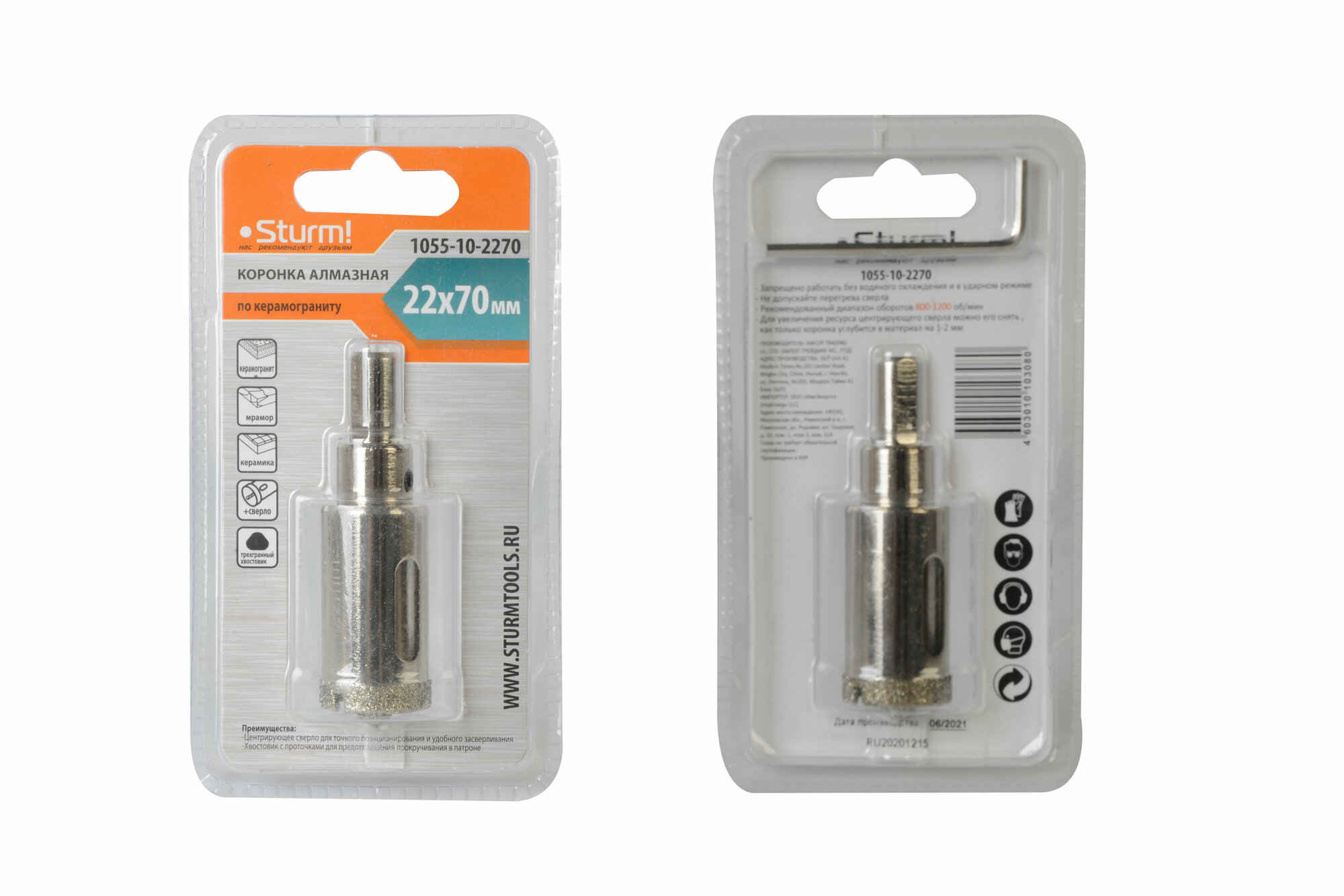 Коронка алмазная по керамограниту Sturm! 1055-10-6070 60 х 70 мм хвостовик с центрир. cверл.