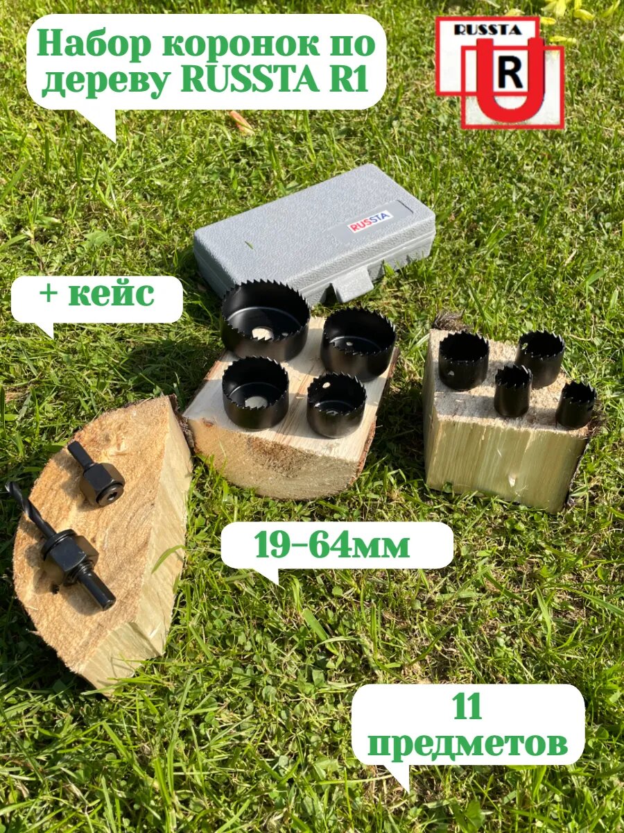 Набор коронок RUSSTA R1 19-64mm, для работы с деревом, 11 шт. интересное: