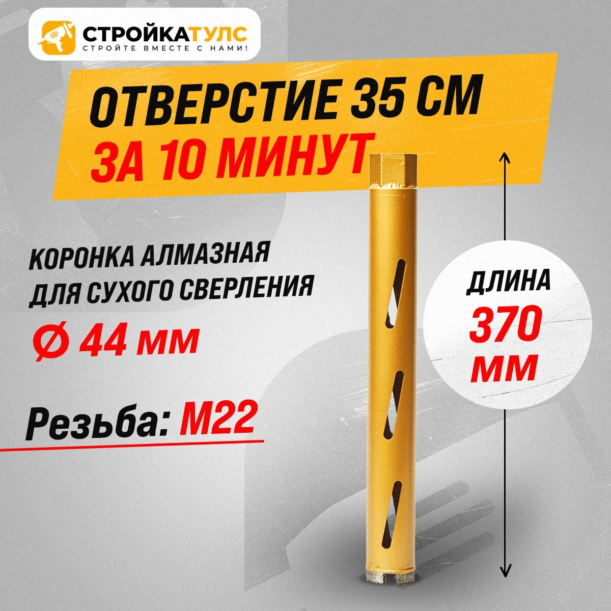 СохранитьКоронка для алмазного сверления бурения сухорез 44*370 мм интересное: