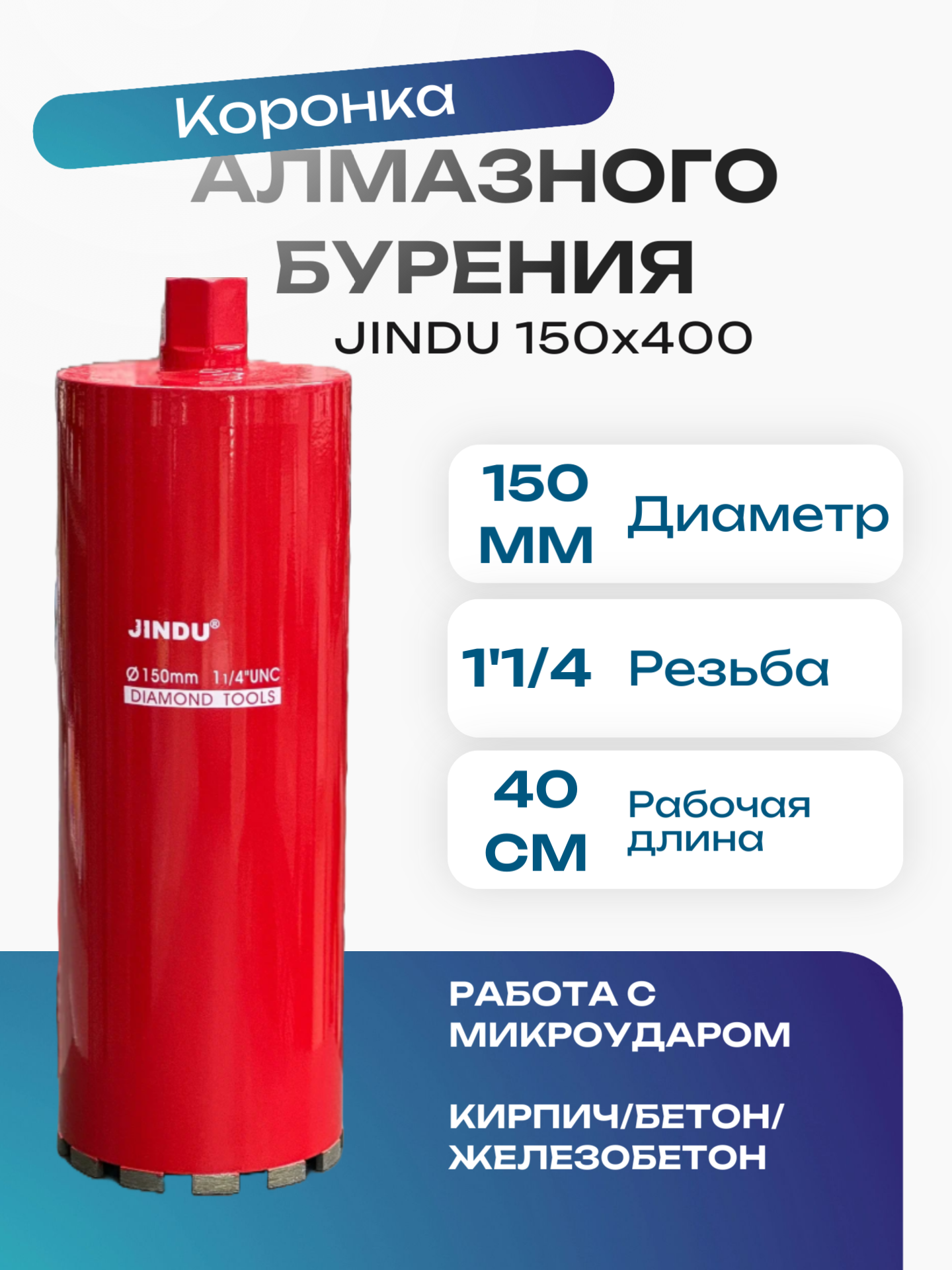 Коронка алмазного сверления Jindu 150x400 1 1/4 интересное: