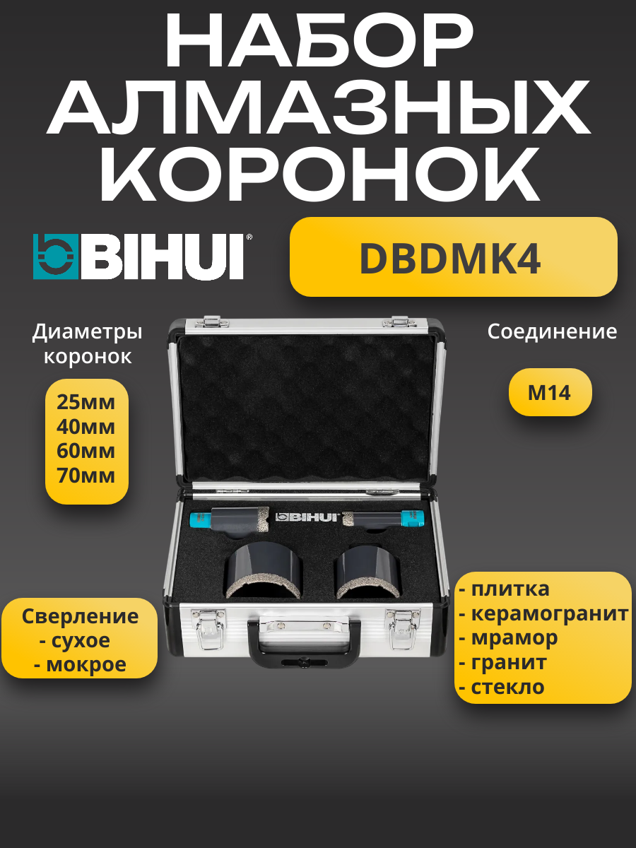 Купить Набор алмазных коронок BIHUI DBDMK4, для керамики, стекла, камня, сухой и мокрый тип сверления