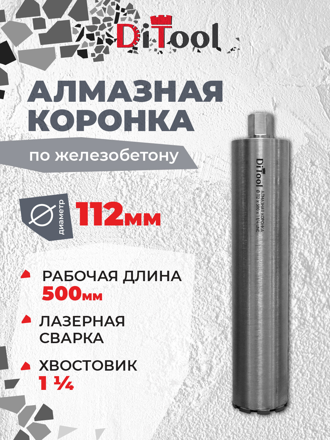 Коронка алмазная Ditool SM 112, для армированного бетона, гранита, железобетона, камня, кирпича интересное: