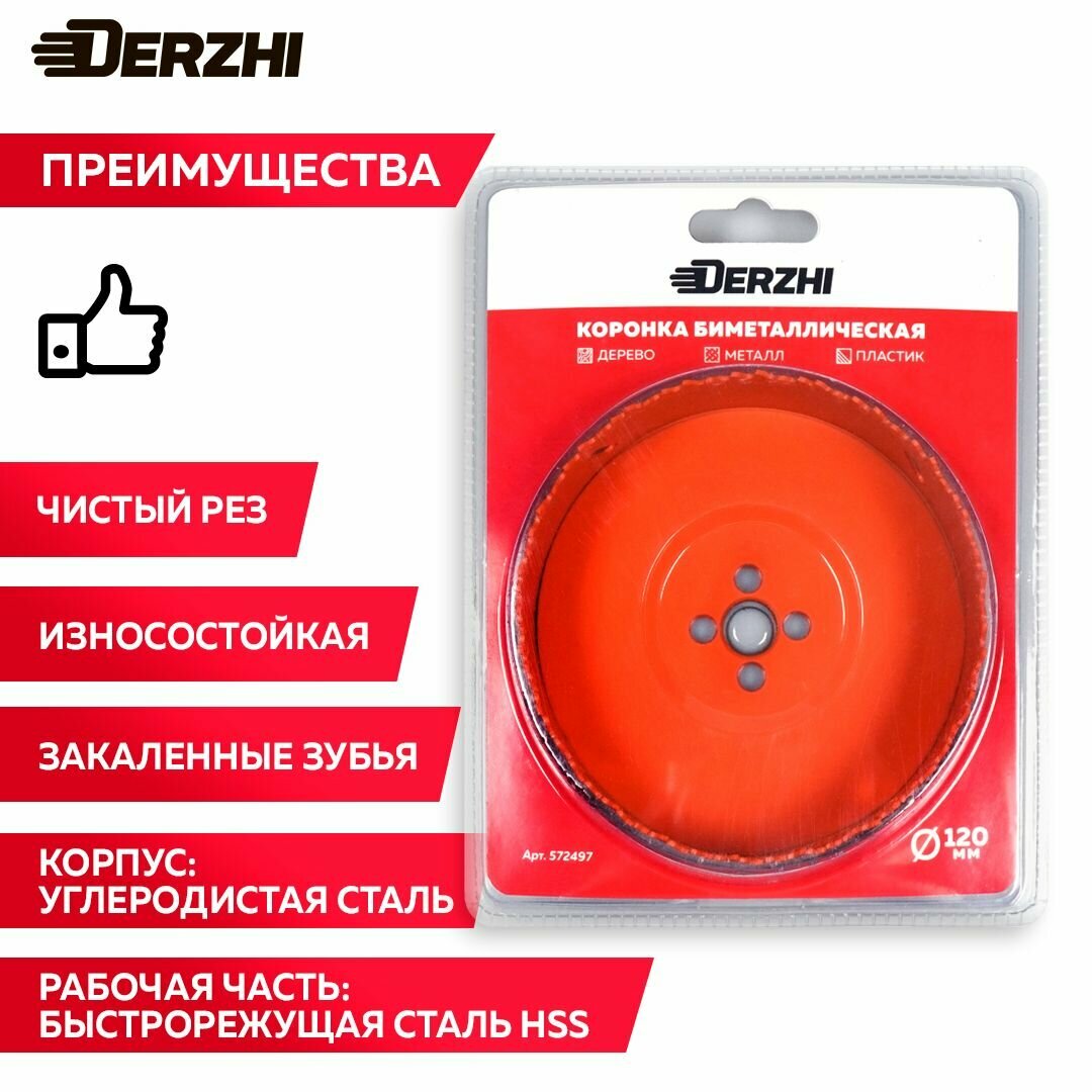Купить Коронка биметаллическая по металлу, дереву, пластику, 120 мм, Derzhi