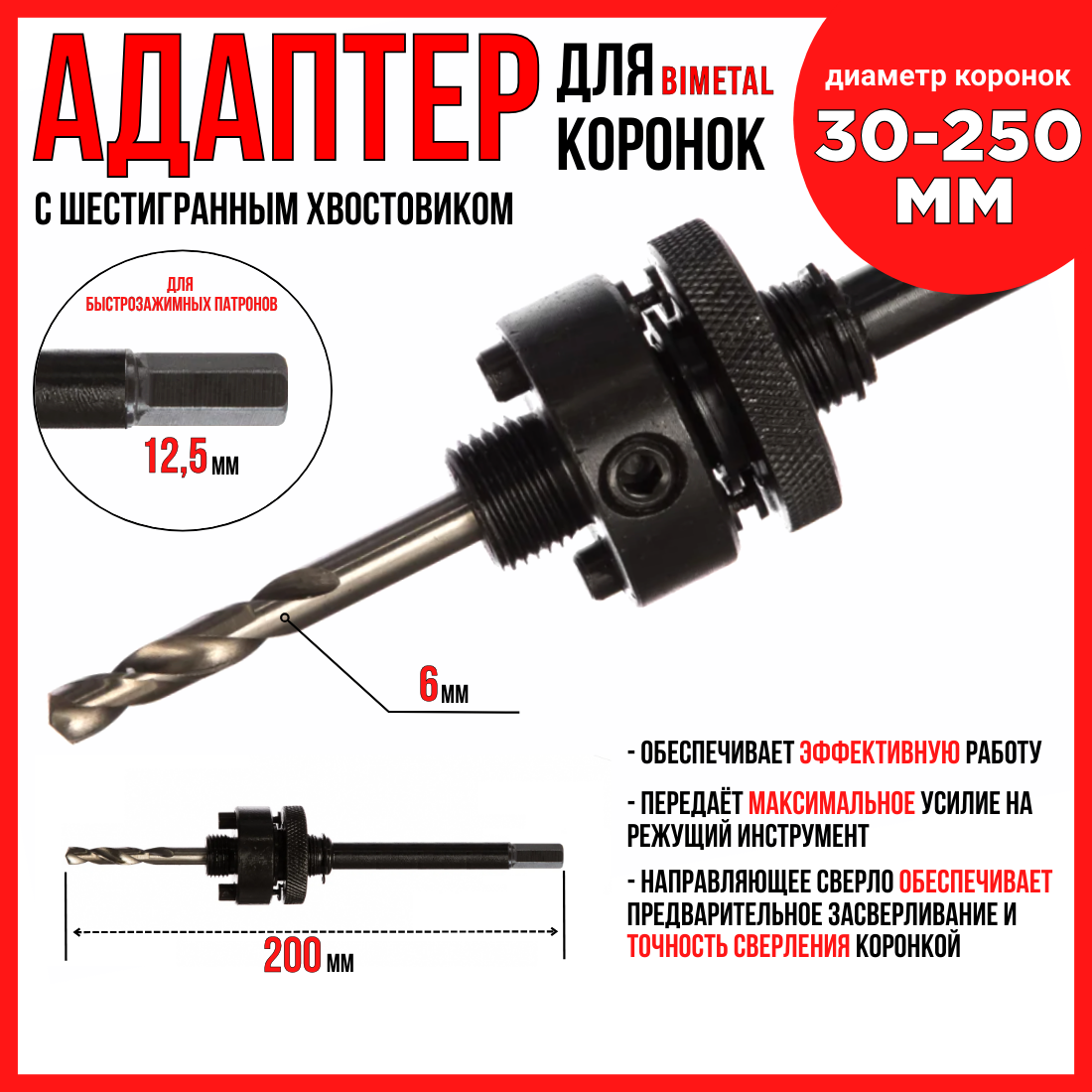 Адаптер 200мм с центрующим сверлом для коронок BIMETAL и шестигранным хвостовиком интересное: