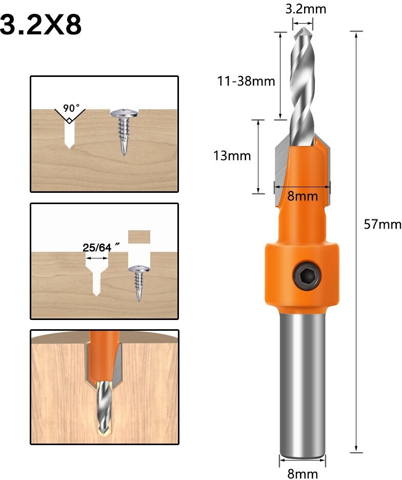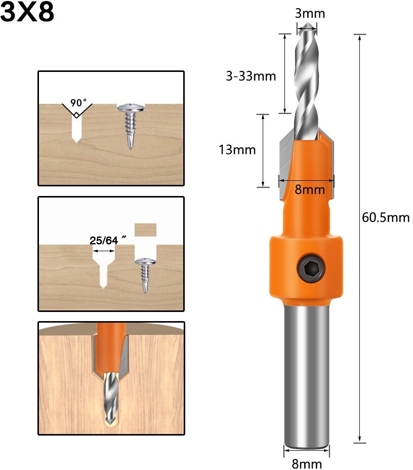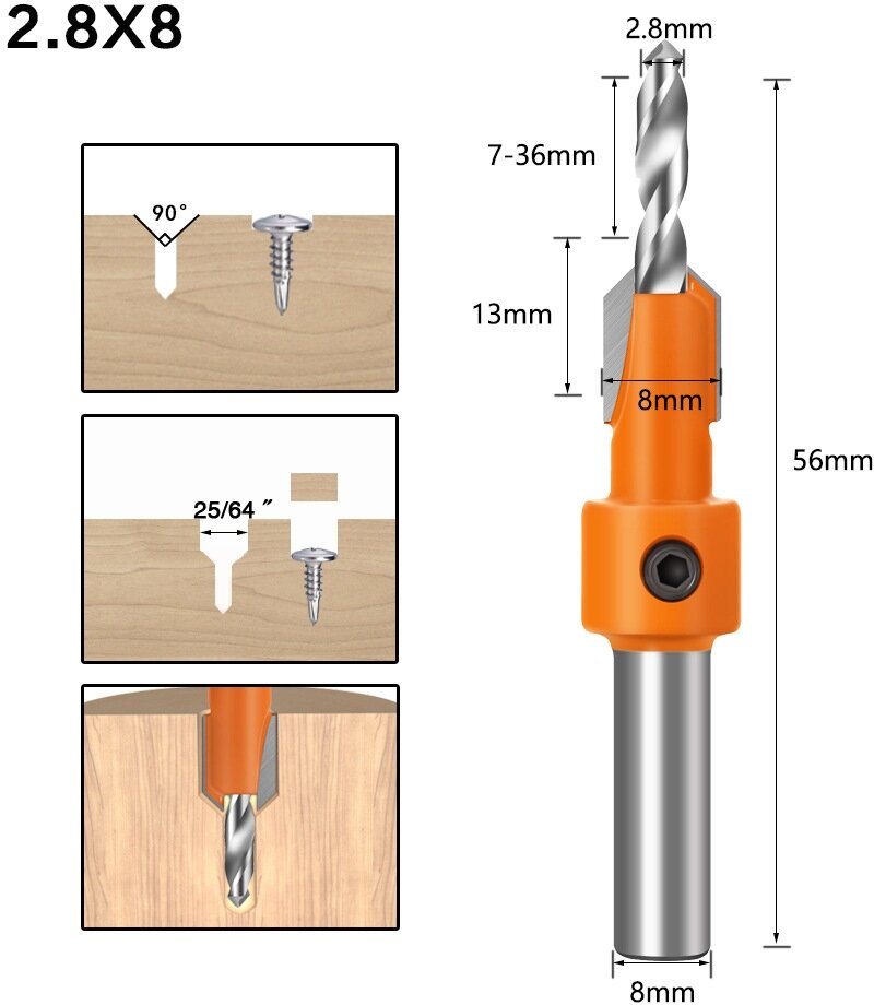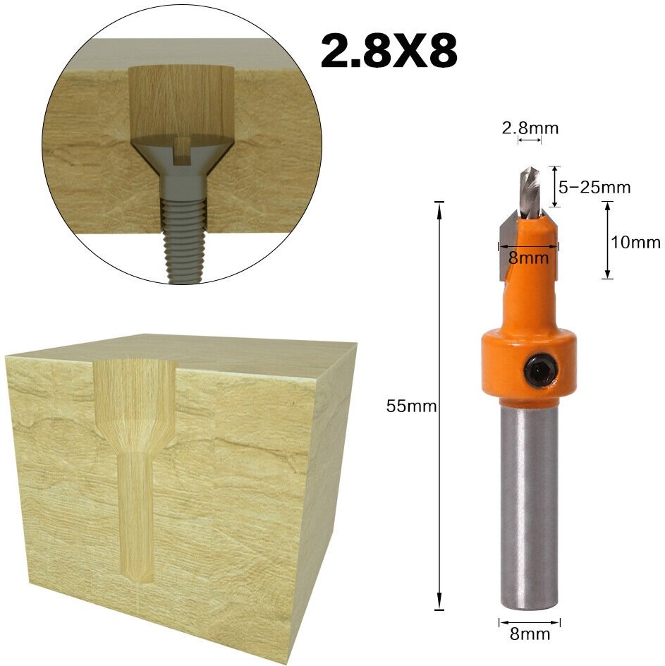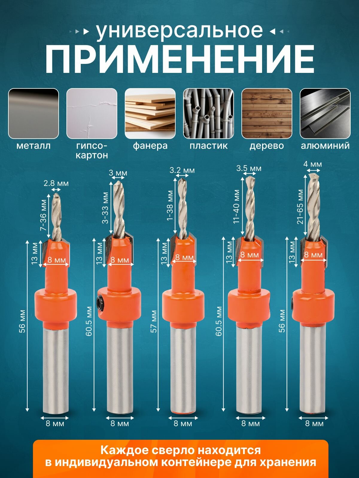 Сверло с зенкером 8мм. комплект 5 шт. диаметром 2.8мм. 3мм. 3.2мм. 3.5мм. 4мм. интересное:
